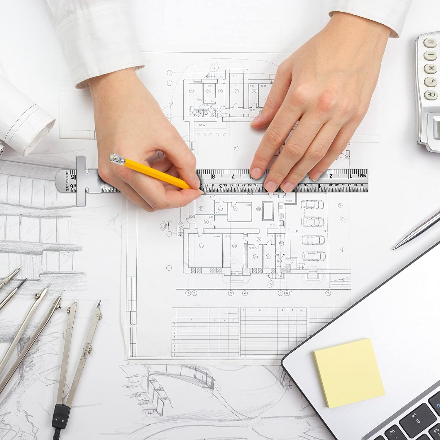 - Steel Ruler: the back of 6 inch ruler is engraved with a conversion table from inches to mm, which facilitates the conversion of various measurement data, offering you considerable convenience