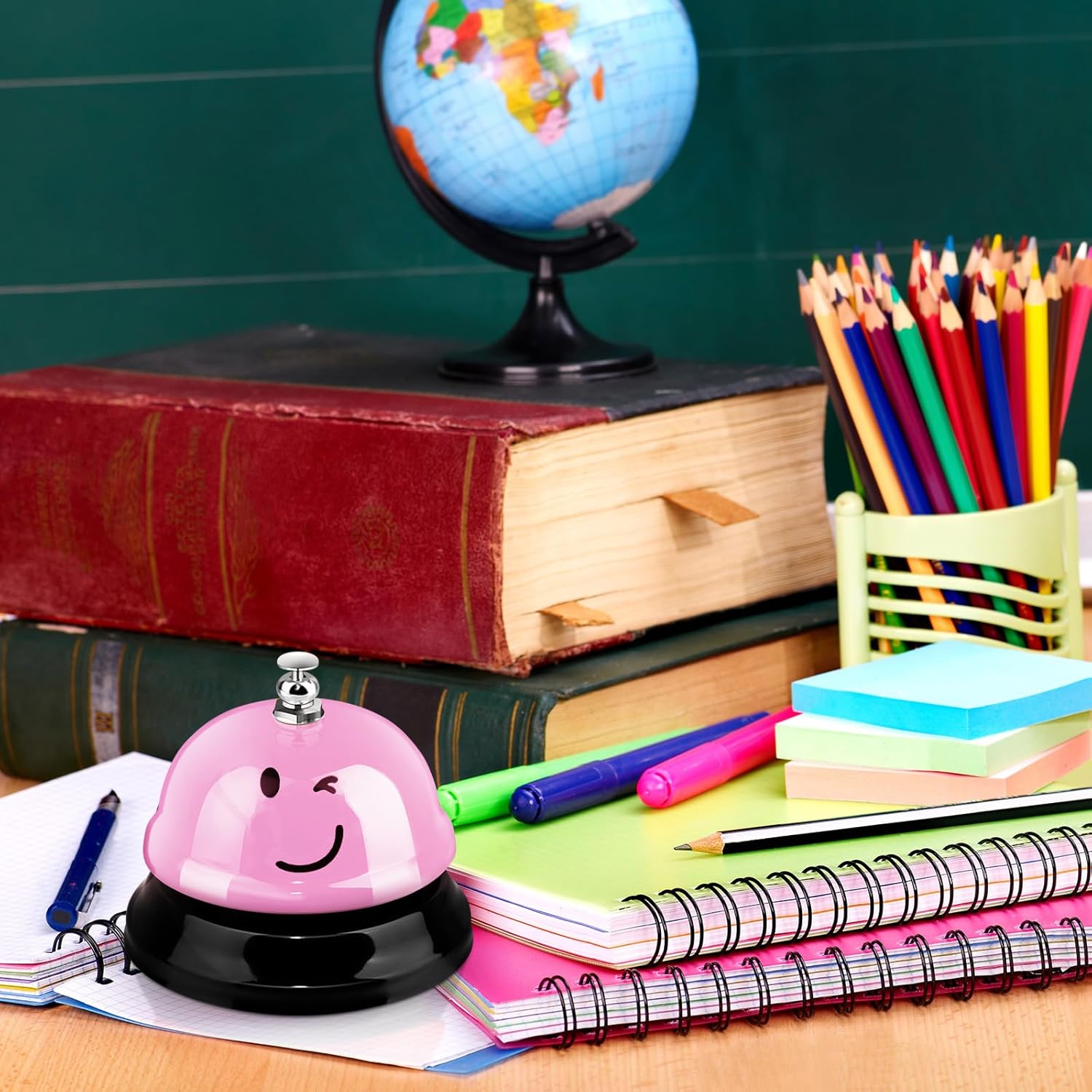 Hotop 3 Pcs Desk Bell for Service Funny Front Desk Smile Face Metal Ringer Call Bell for Kitchen Hotel Restaurant Classroom(Smile Face,Macaron Pink, Blue, Purple)
