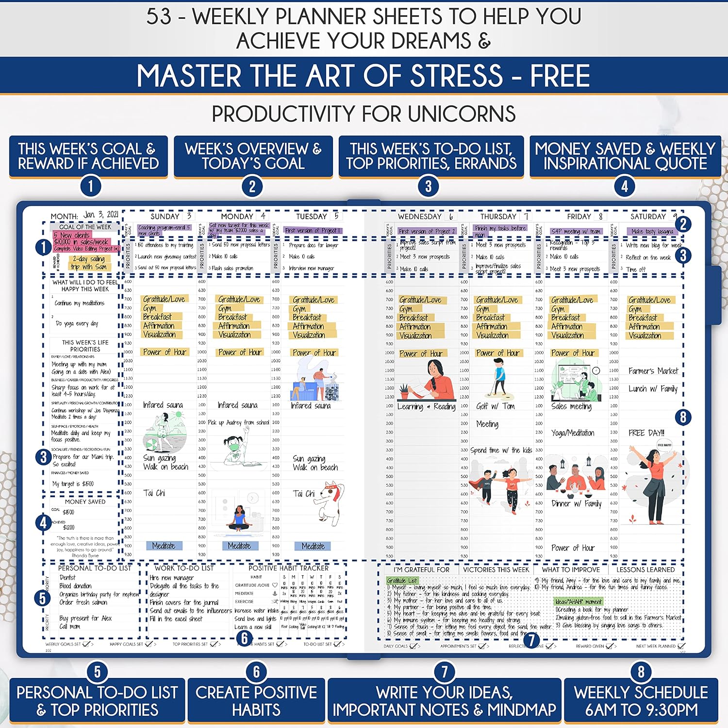 - GOAL SETTING PLANNER - Learn how to set big goals, be happy, and efficiently manage your time by adopting the same tactics used by millionaires to set and achieve them