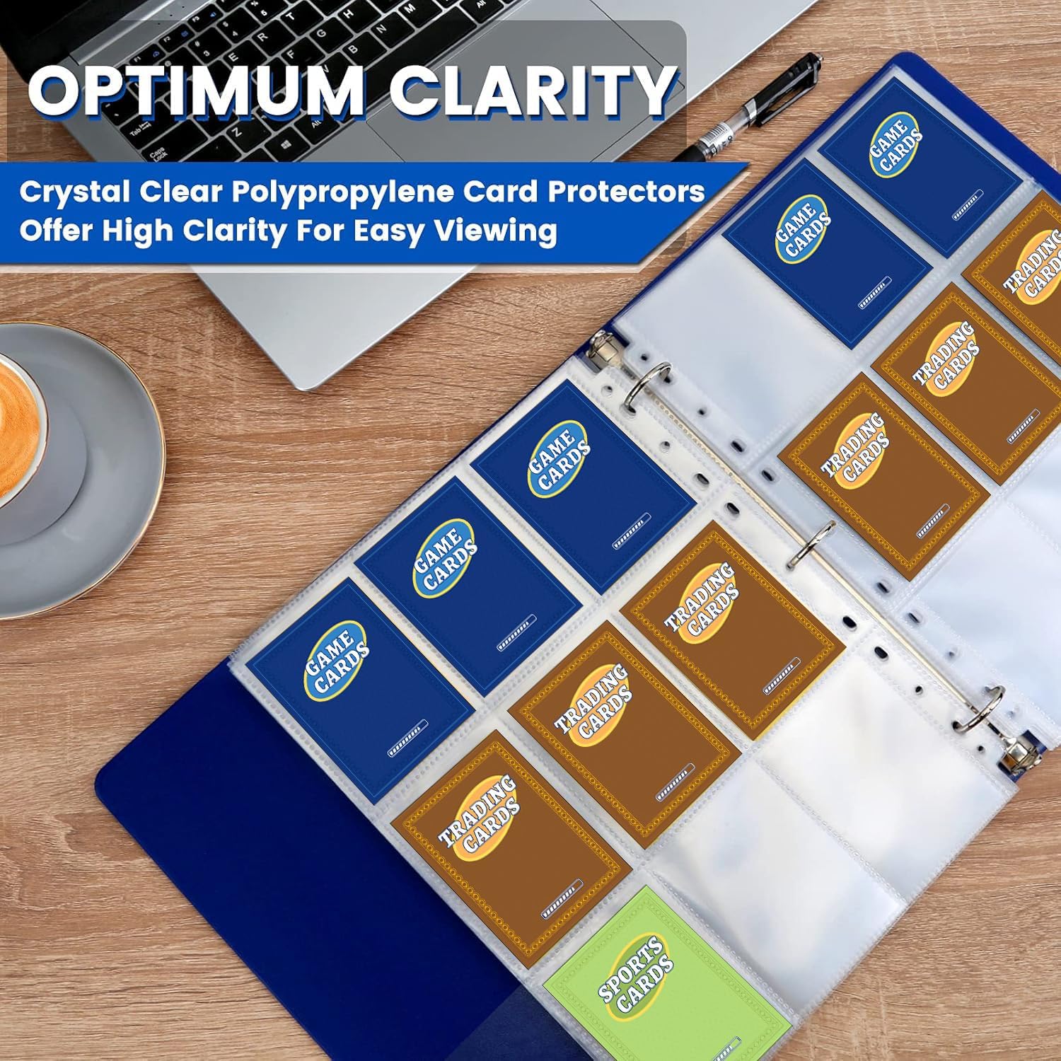 - 11-Hole Punched Design Fits All Standard Binders: Compared to others provide 3 holes photo sheets, we have 11 holes pre-punched which allows the card sleeves binder sheets to fit in any standard ring binders, such as 2/3/4/11 ring standard binder.