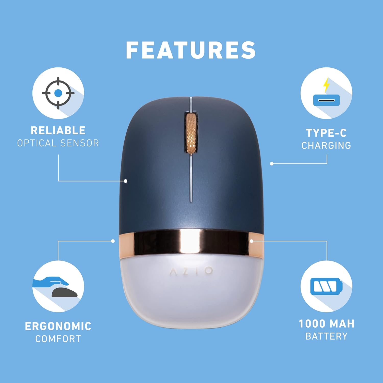 Azio IZO Wireless Optical Mouse - Bluetooth 3.0 & 5.0/2.4G RF-USB, Ambidextrous Design, PixArt PAW3212 Sensor, 1000/1600/2400 DPI, Rechargeable, PC & Mac