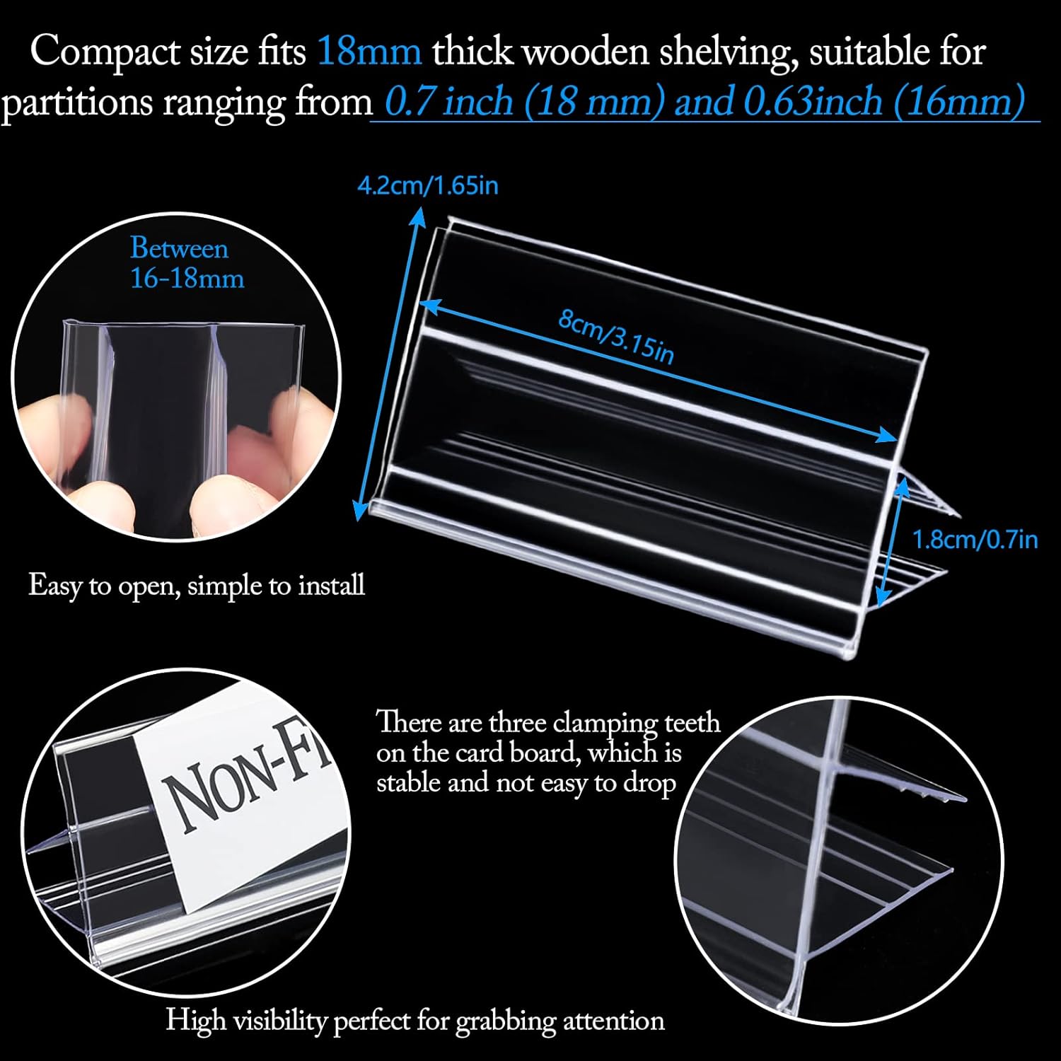 - Perfect fits: Designed specifically for 18mm wooden shelving, it made a great improvement, visually. when have tags just set on shelves. Using these made it much better looking.