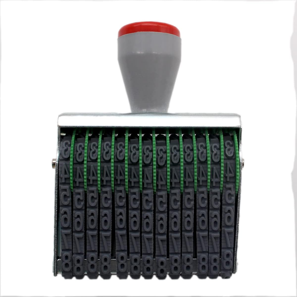 - 13 Digits Rubber Number Stamp: Material : Metal/Plastic. Size:Length :100 mm/3.93 in, Width:72 mm/2.83 in,High:25 mm/0.98 in,Character : Width:4 mm /0.15 in,Height:7 mm/0.27 in, Color : Gray black,Weight: 95 g, Package Content : 1 X Numbering Stamp(Without ink Requires a separate ink pad)