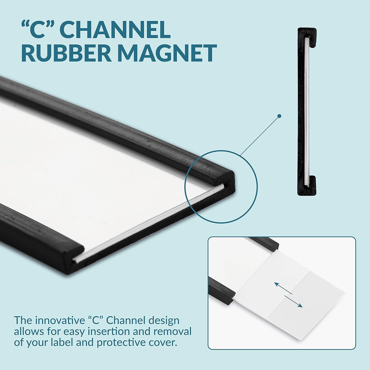 - Heavy Duty Magnet for Superior Hold: Each rubber “C” channel holder is backed with a powerful magnet, so it stays securely in place to maximize your organization efforts. Measures 2” long x 1” high x 0.09” thick.