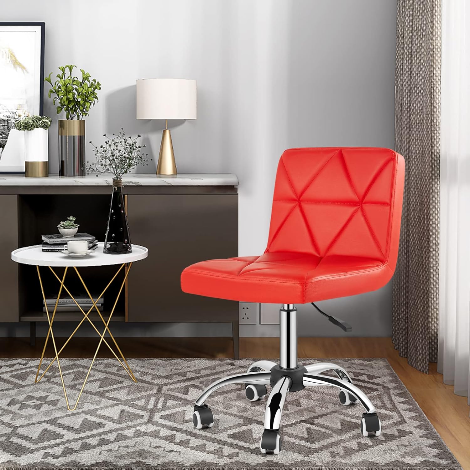 COSVALVE Armless Desk Chair, Mid Back Swivel Office Chair, Adjustable Task Chair with Rolling Wheels and Diamond Pattern, for Home Computer Barber, Red