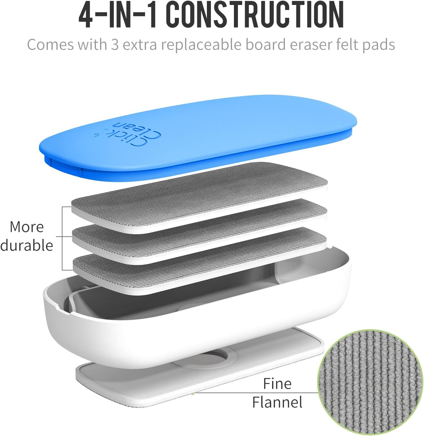 CLICK CLEAN Replaceable Dry Erase Board Eraser, 4-in-1 Magnetic Whiteboard Eraser with 3 Replaceable Felt Pads, Free 3.4oz Whiteboard Cleaner Included, Intended for Classroom, Home and Office