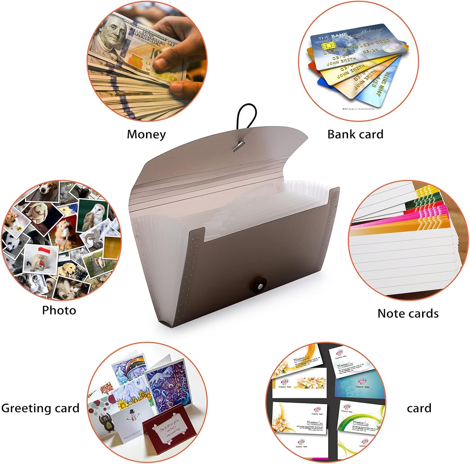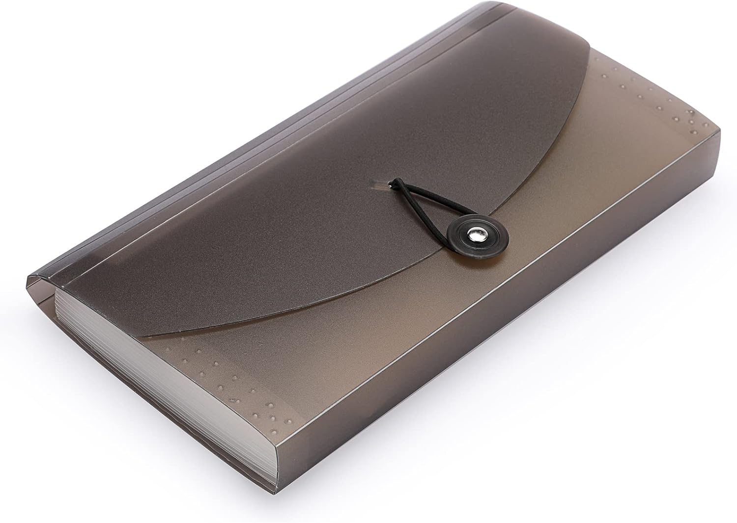 BTSKY Expanding Accordion File 13 Pockets Small Card Ticket Holder Storage Folder Check Bill Plastic Wallet Case (Coffee Translucent)