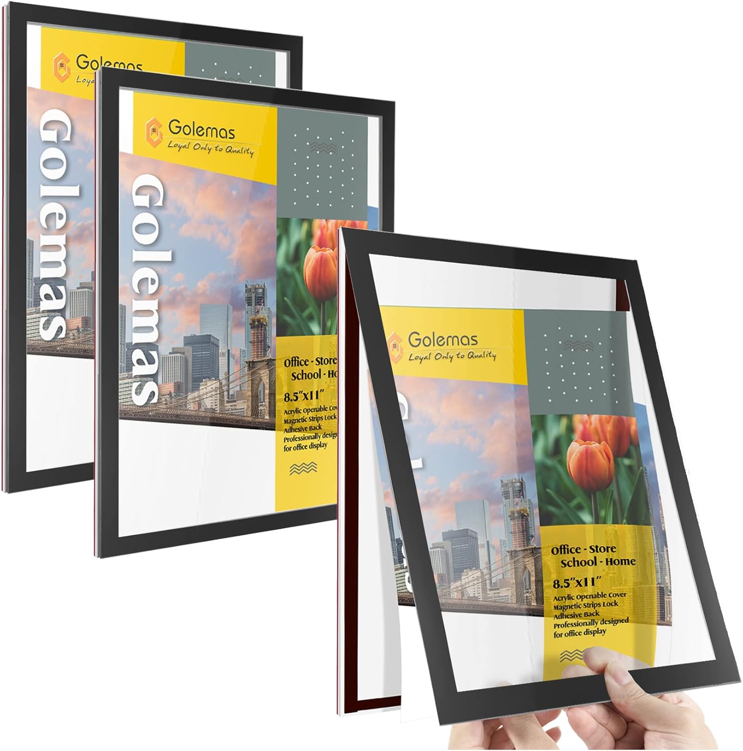 - MULTI-USE FRAME: Golemas Acrylic Magnetic Display Frame is a great tool to display signs in store, restaurant, school, office, factory, bank, hotel and so on. Meanwhile it's a great choice to use it at home to present photographs and artworks on a refrigerator or cabinet.