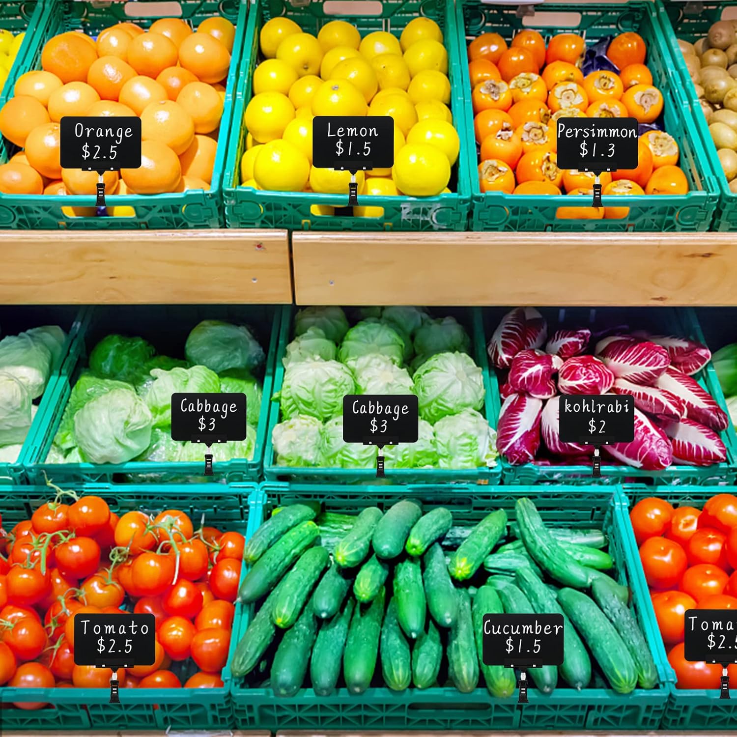 - Merchandise Display Sign Clips: You will get 8 sets price display signs with clip, and 2pcs liquid chalks. These plastic mini chalkboard signs feature with smooth surface and is easy to write and can be reusable. Pop clips-on style sign holder is suitable for supermarket, shop and more.