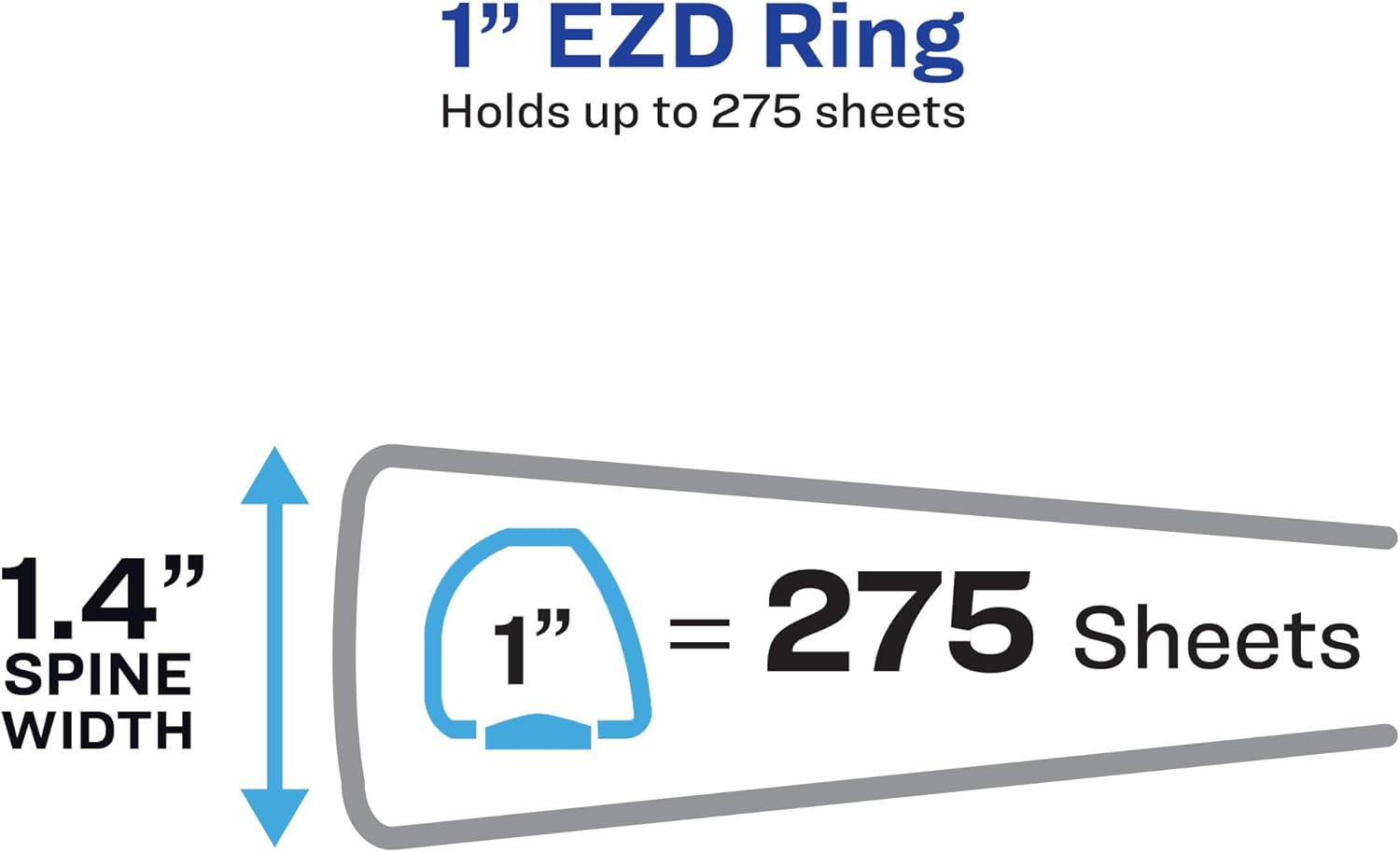 - White heavy-duty binder features 1 inch One Touch EZD rings, 1.4" tear-resistant DuraHinge spine, DuraEdge split-resistant edges, 4 clear interior pockets and customizable covers and spine