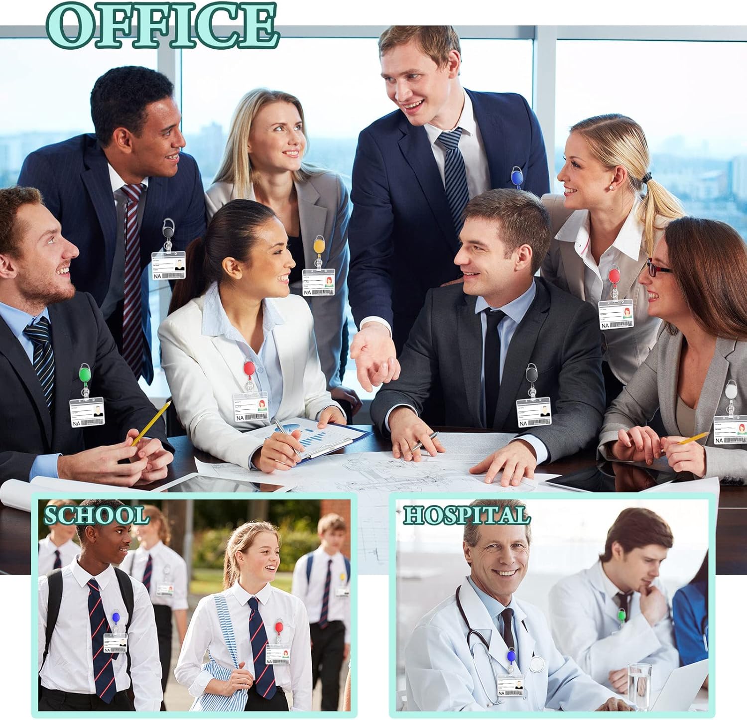 - Package: you will get 50 packs of retractable badge clips, there are 12 colors in total, 11 bright colors, 4 of each bright color, and 6 of black color; Badge reels featuring clip, stainless steel key ring, vinyl snap strap and plastic cover, clip attachment for effortlessly and quickly fastening to belt loops, straps, backpacks, bags and more, allow a quick and easy way to scan or swipe your badge