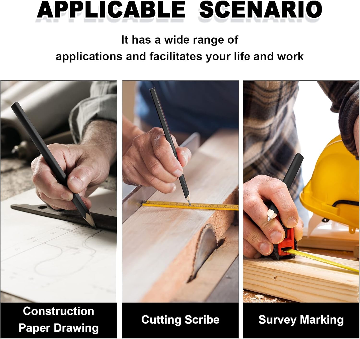 - Multipurpose: wood carpenters pencil can withstand the pressure of marking on hard, rough, and uneven surface materials, such as wood, plywood, cardboard, unprocessed wood, wood, paper, concrete, bricks, and so on