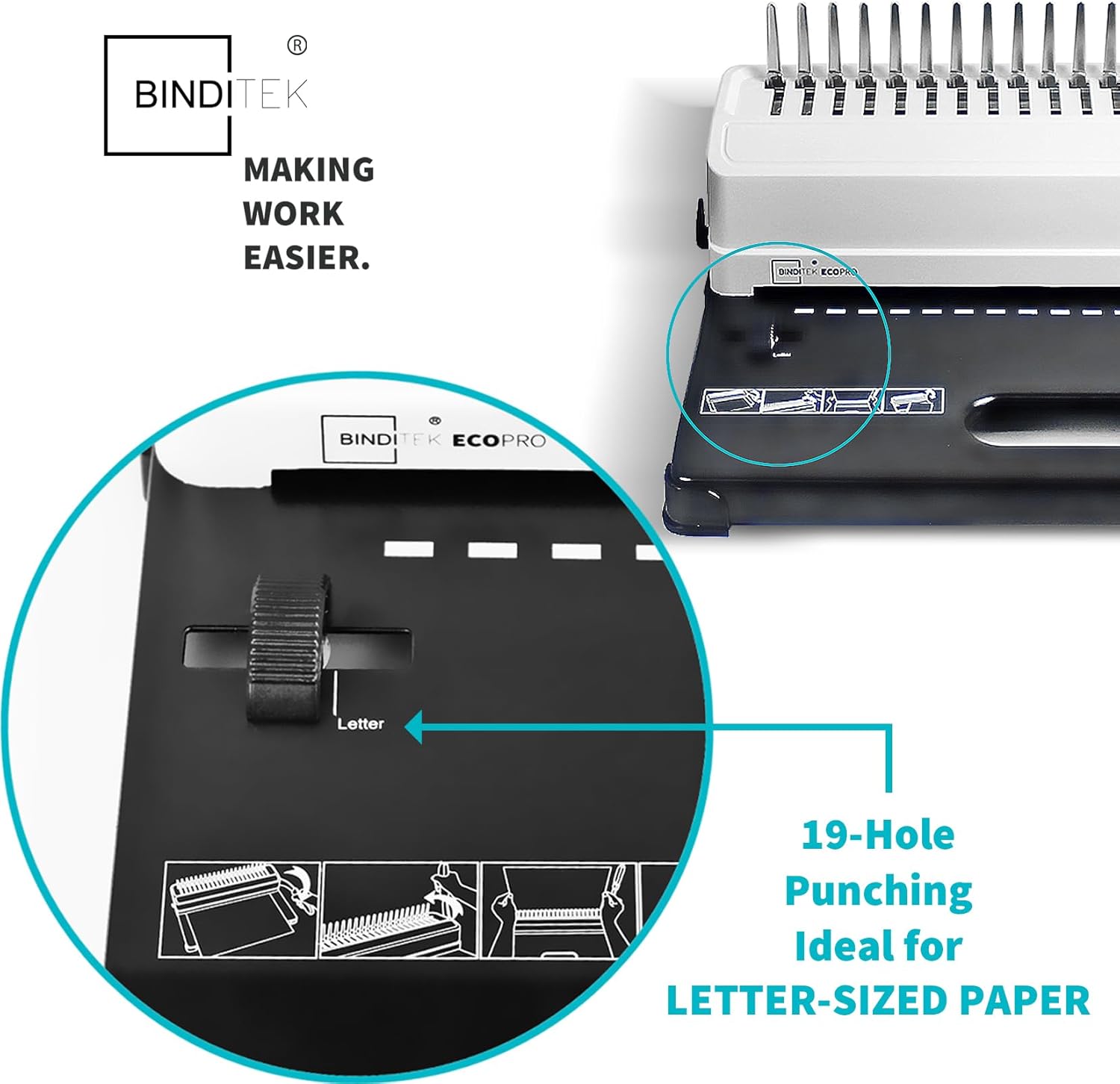 - 【Humanized Design】Our comb binding machine features advanced cutting blades and an ergonomically designed curved handle, allowing you to cut paper effortlessly with minimal force. The 19-hole punch is specifically designed for Letter-size paper but can also accommodate A5 size (15 holes) or other smaller sizes. This comb binding machine is engineered for consistency, ensuring long-term use and professional-quality bound documents.