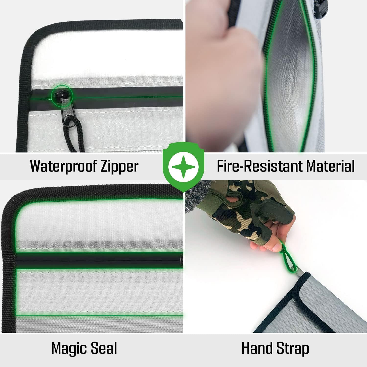 - 🔥【FIREPROOF AND WATERPROOF】Fireproof bag can withstand temperatures of 2000℉ in certain times.Waterproof zippers and magic stickers closure provide great water protection to the fireproof document safe bag.The waterproof fireproof bag provides 100% security seal and maximum protection for your documents and valuables.