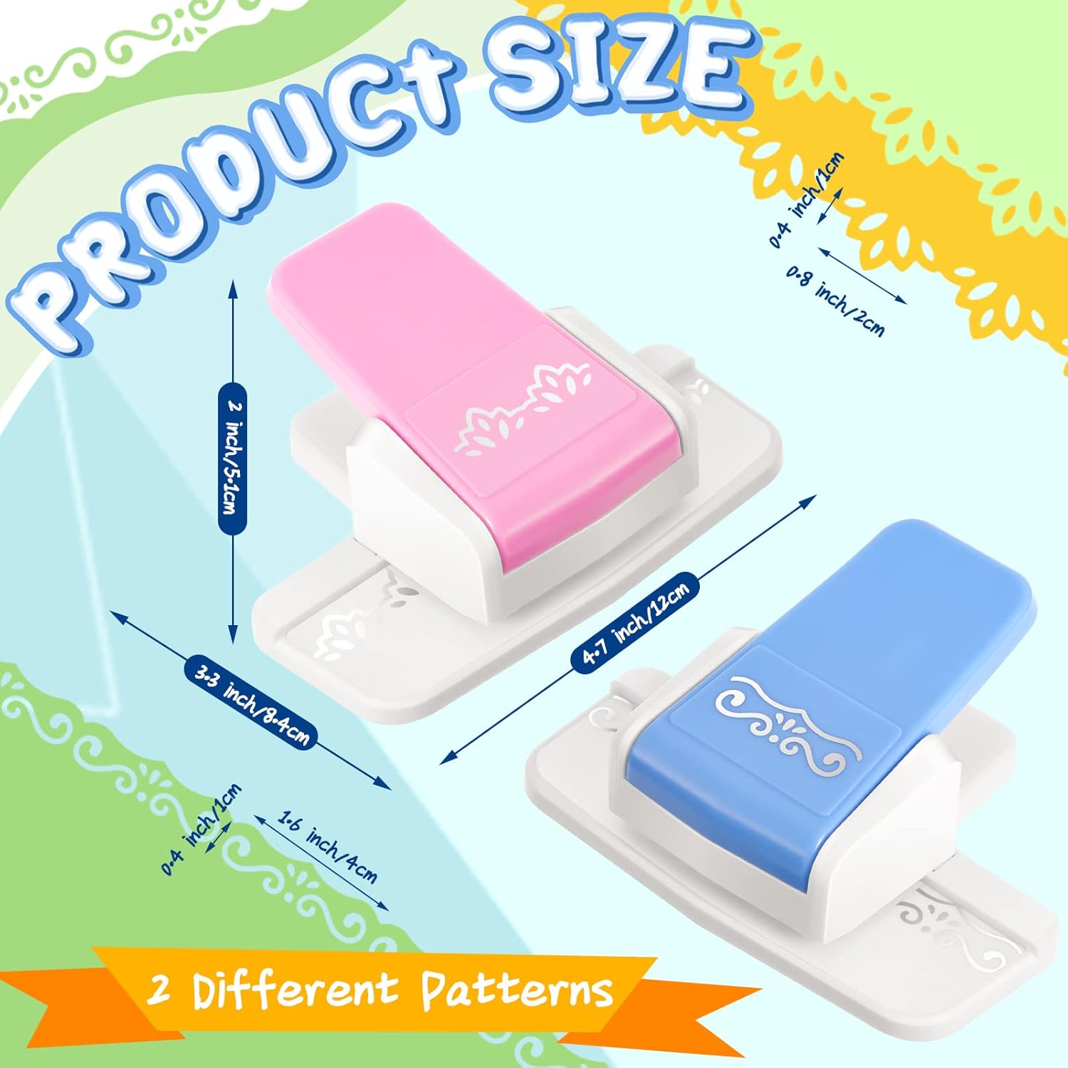 - Proper Sizes: each border punch for paper craft measures about 4.7 x 3.3 x 2 inches; The punch out size of the S shape is about 1.57 x 0.39 inches, and the flower shape is about 0.79 x 0.39 inches; With a cutting area of about 1.57 inches, you need to use it repeatedly to get the full edge complete