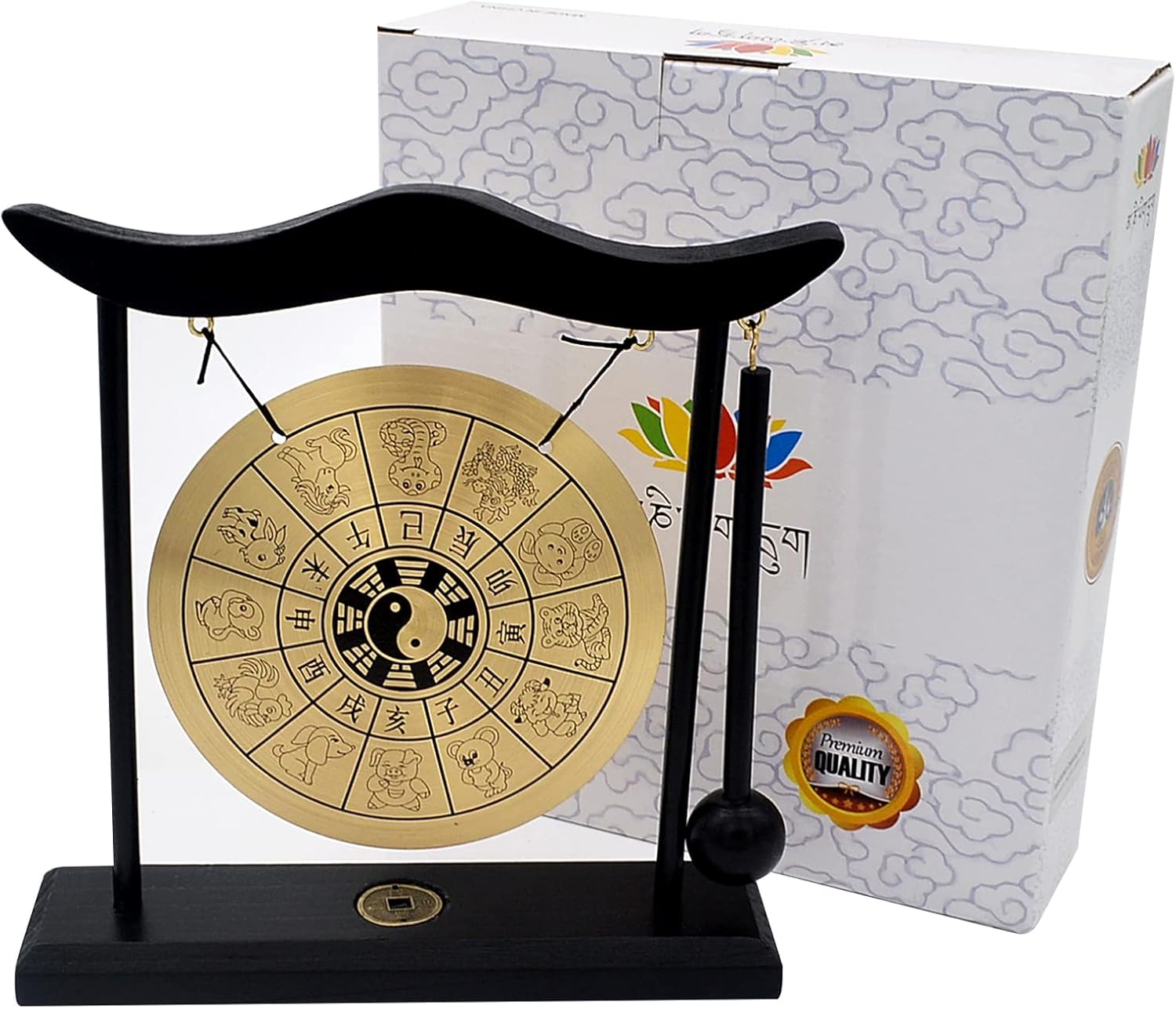 Feng Shui Brass Gong Desktop Zen Art for Fortune + Free Red String Bracelet H1304