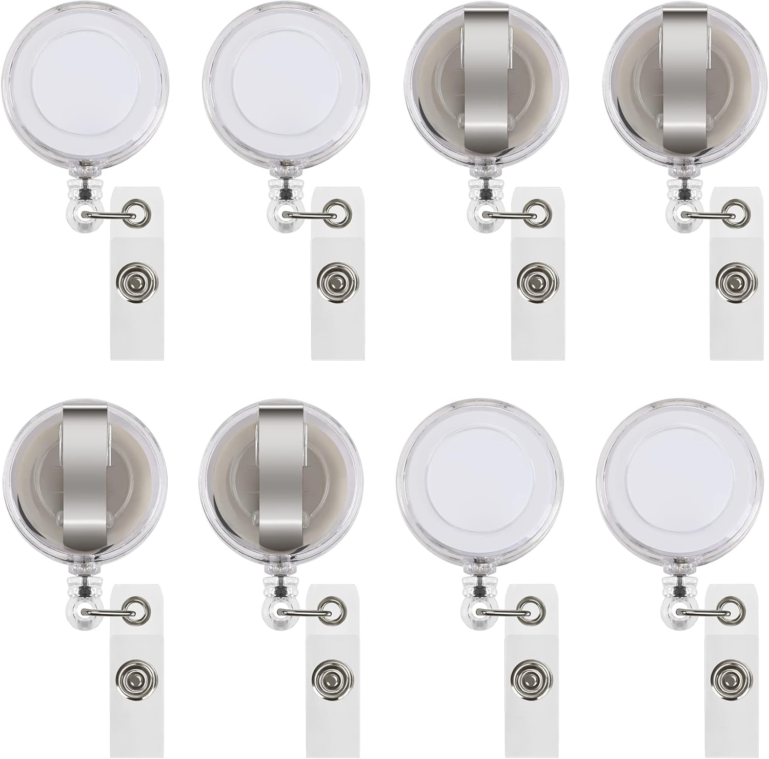 - Good Cost Performance: 50 clear white color quality badge reels clips. You can hold badge reels in your belt, pants,pockets, backpacks , purse straps, handbag,collar or trouser expediently. Retractable keychain is great for business cards in office and life.