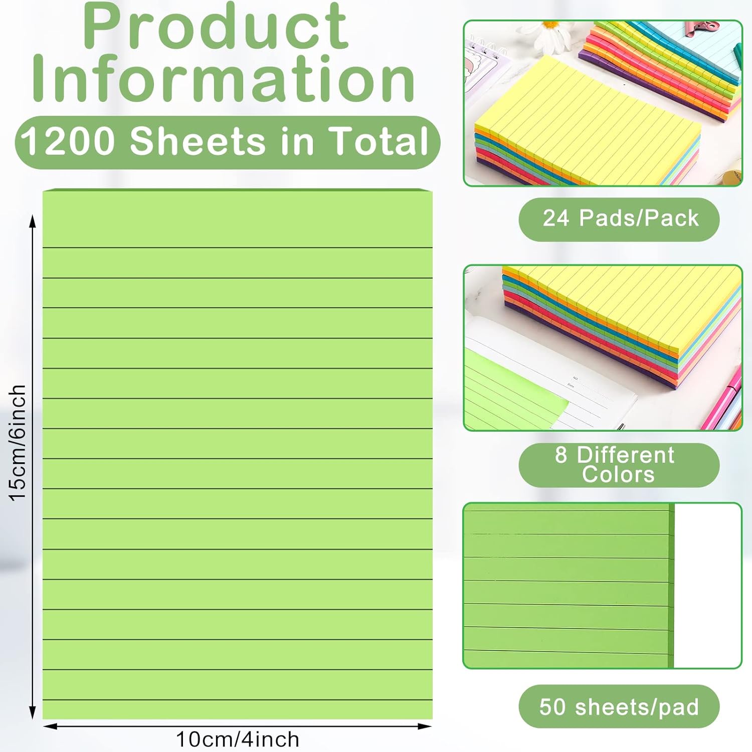 - Portable Size: these bright lined sticky notes measure 4 x 6 inches/ 10 x 15 cm, the compact size and light weight are very suitable for carrying around, which is convenient for you to record and memorize important matters or work when you go out, providing you with convenience