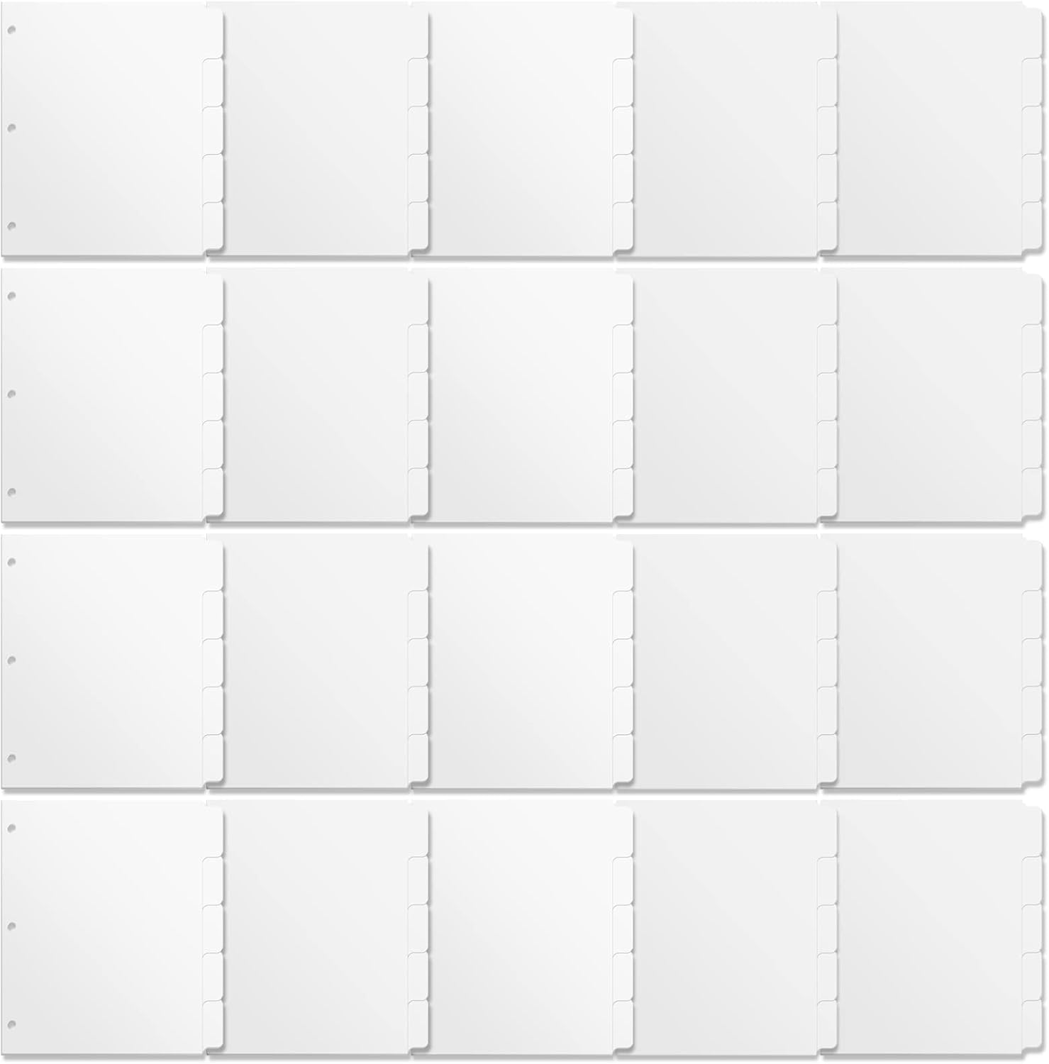 3 Ring Binder Dividers with 5 Tabs, Write & Erase Plastic Binder Dividers Durable 3 Hole Punch Dividers Letter-Size 1/5 Cut Big Tabs Dividers, 20 Set, 100 Dividers Total