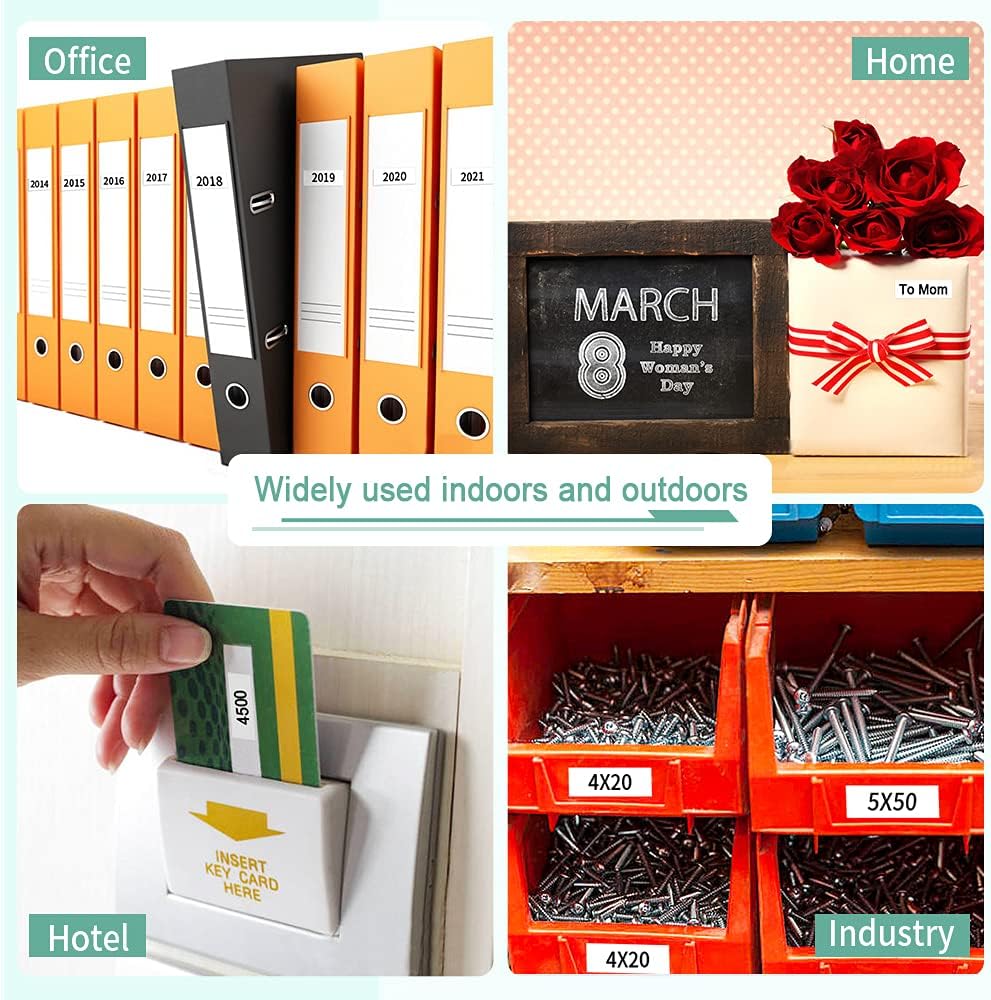- Wide Applications: Compatible with labelmanager 160 refills 12m 1/2" D1 tape 45013s can be used indoors or outdoors. It's suitable for home, office, school, industry, warehouse, chemistry laboratory, hotel, and hospital and perfect for labeling kitchen seasonings, files, folders, shelves, and books