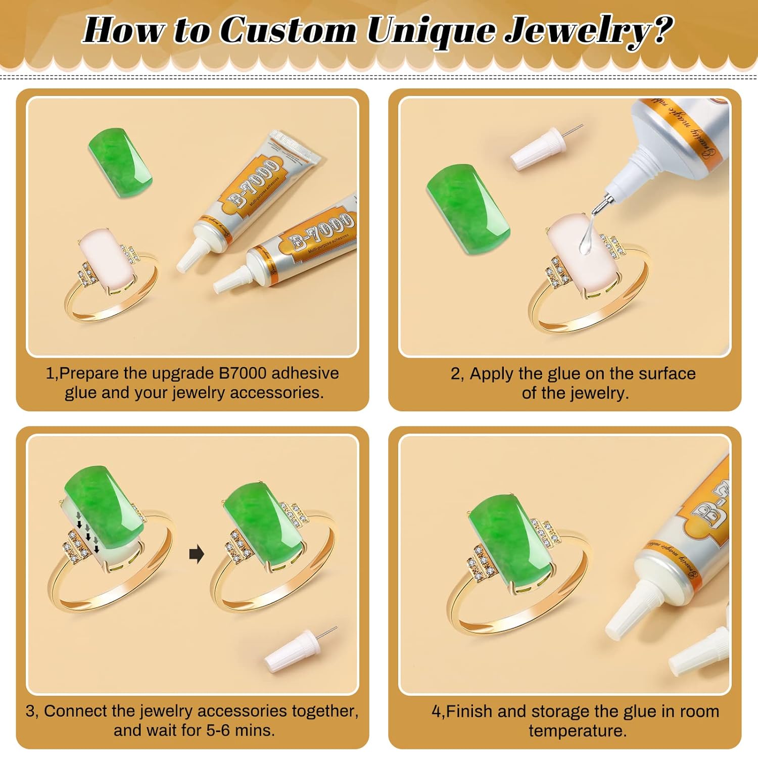 B7000 Glue Clear Adhesive, Jewelry Bead B-7000 Glue Semi Fluid Adhesive Glue High Viscosity with Precise Tips for Rhinestones Fabric, Glass, Jewelry Making, DIY Art Crafts, Leather, Toys (2x25ML)