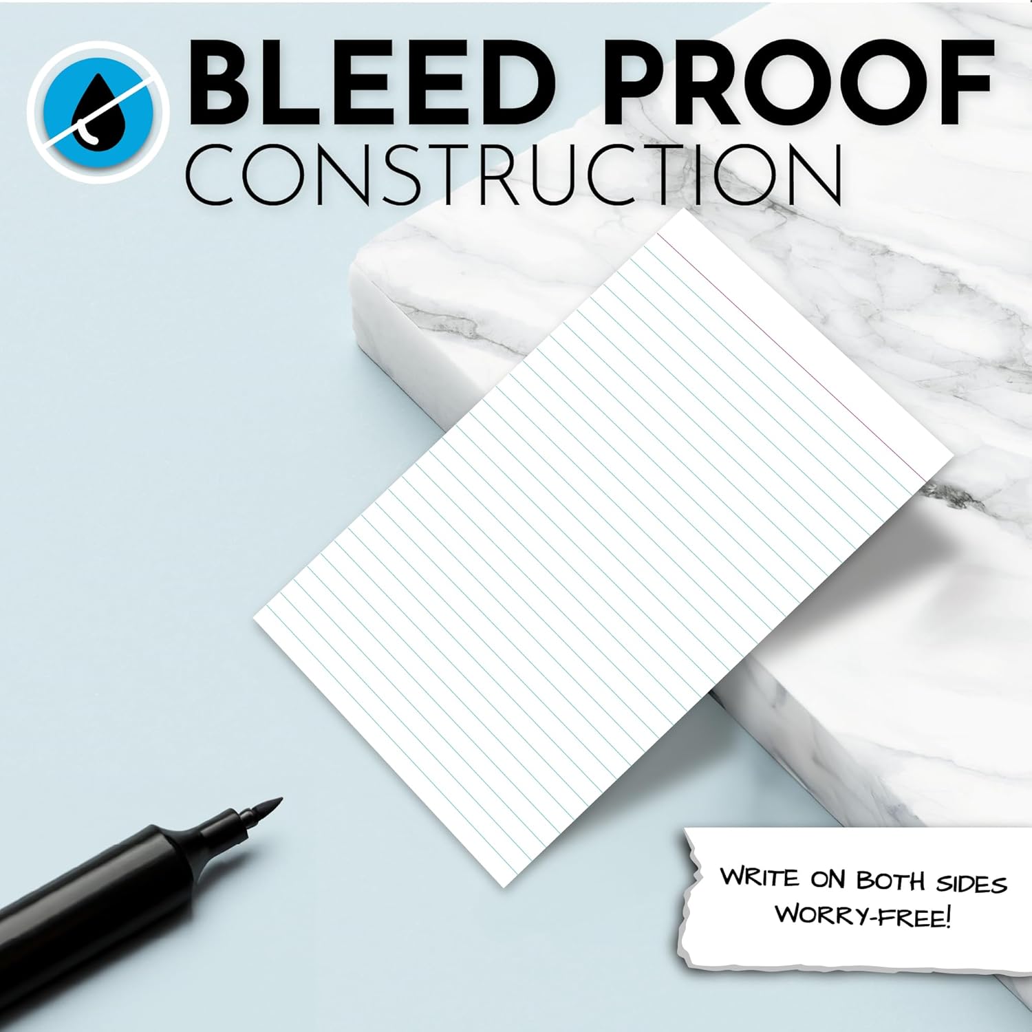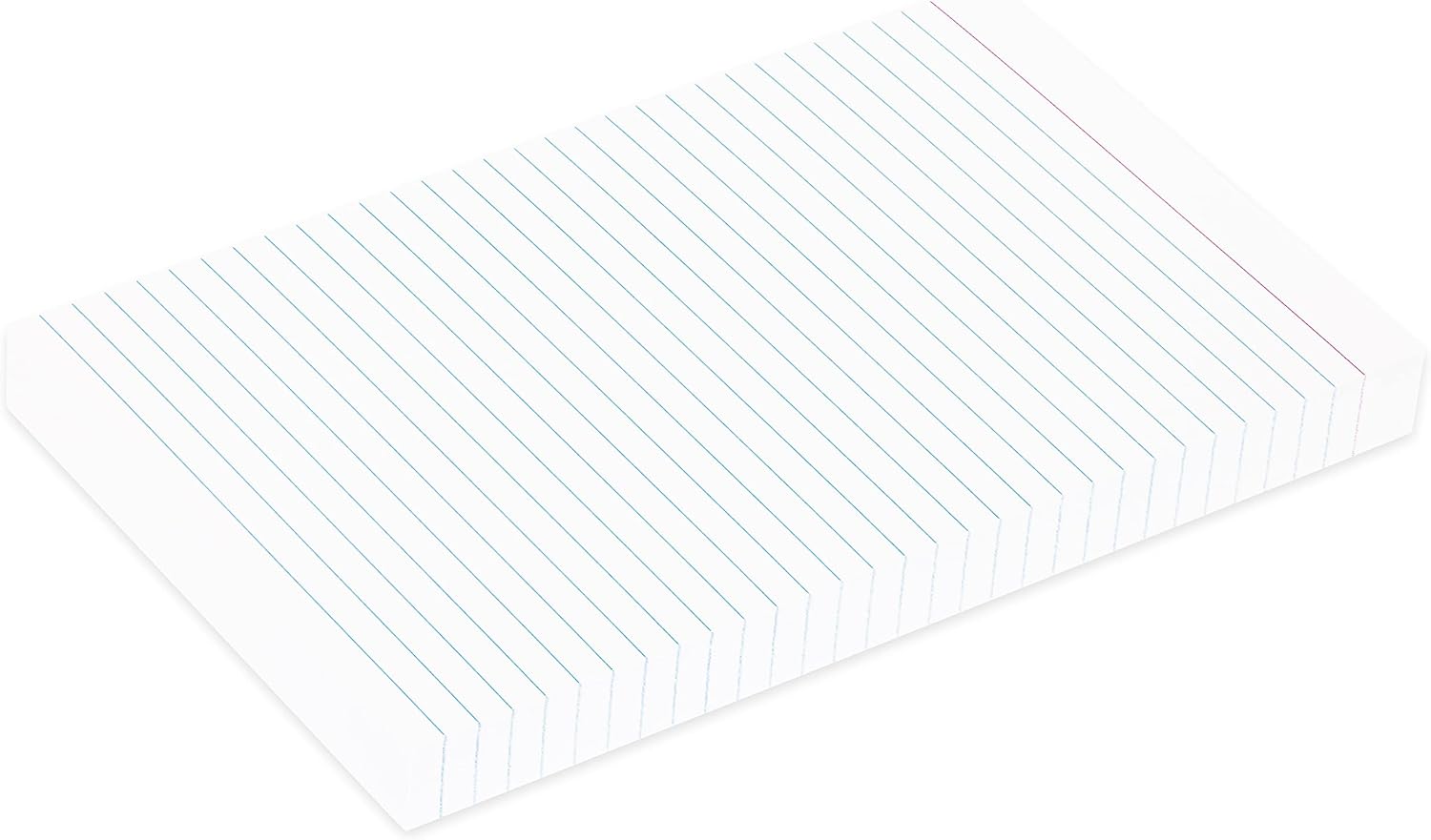 - DETAILS: (50 pack) 5” x 8” double sided, blue lined note cards with header portion at top of card. Lines printed on thick 14PT heavy duty un-coated white card stock paper for writability.