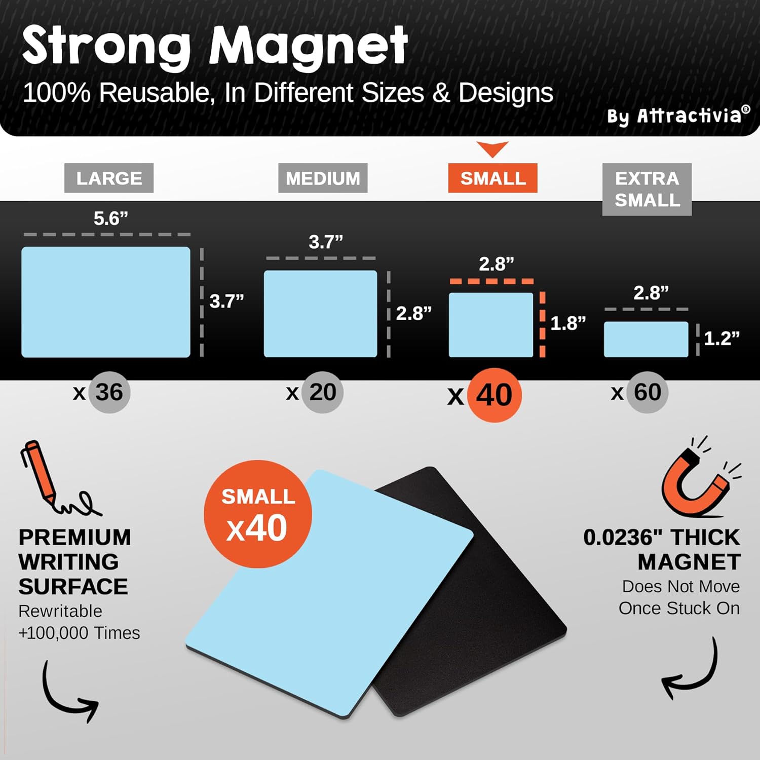 - Instant Organization: Our set of 40 dry erase magnetic labels is perfect for creating writable noticeboards or labeling items at home, in the office, or in a store. These dry erase magnetic labels for dry erase board are also ideal for sorting, identifying, and organizing with ease.