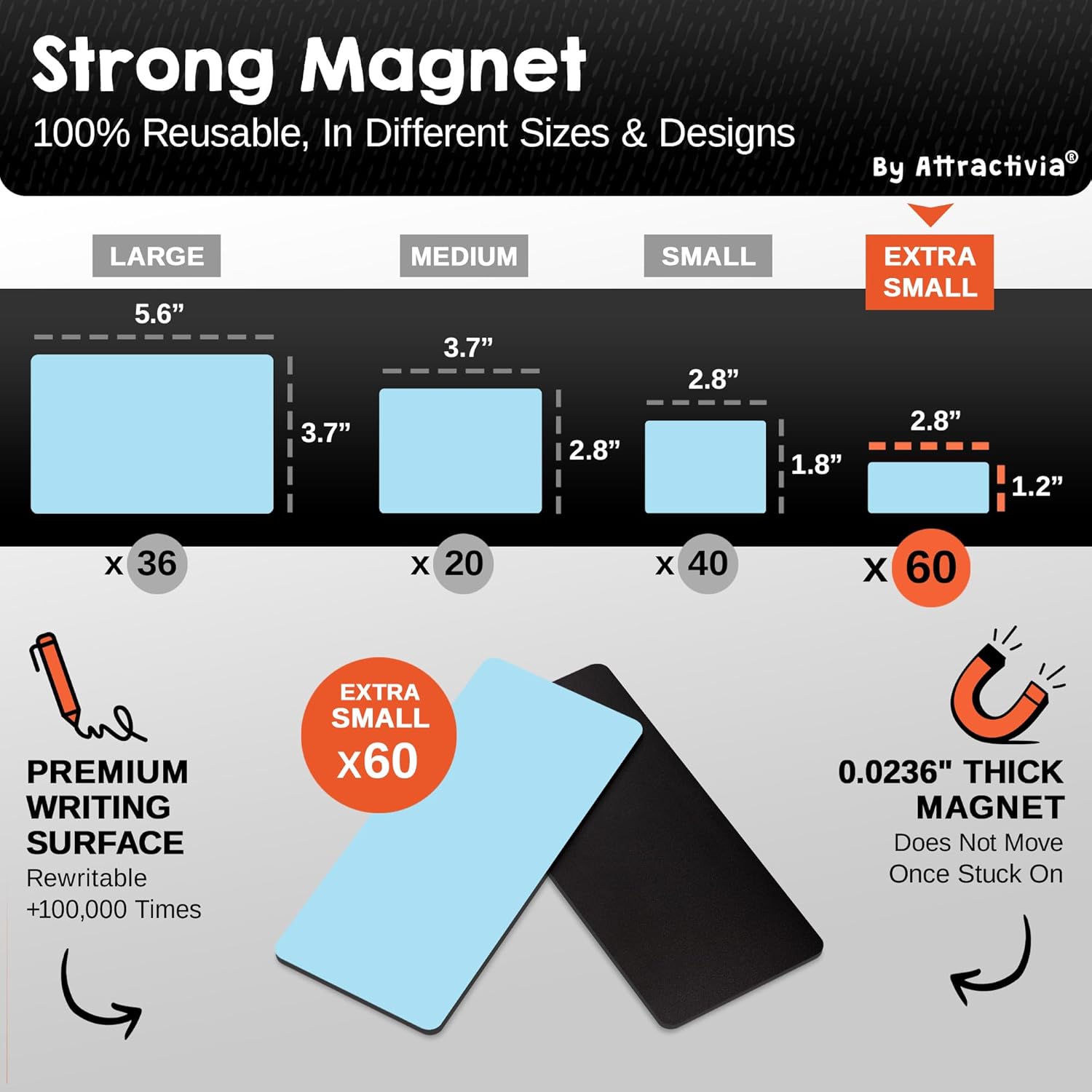 - Instant Organization: Our set of 60 dry erase magnetic labels is perfect for creating writable noticeboards or labeling items at home, in the office, or in a store. These dry erase magnetic labels for dry erase board are also ideal for sorting, identifying, and organizing with ease.