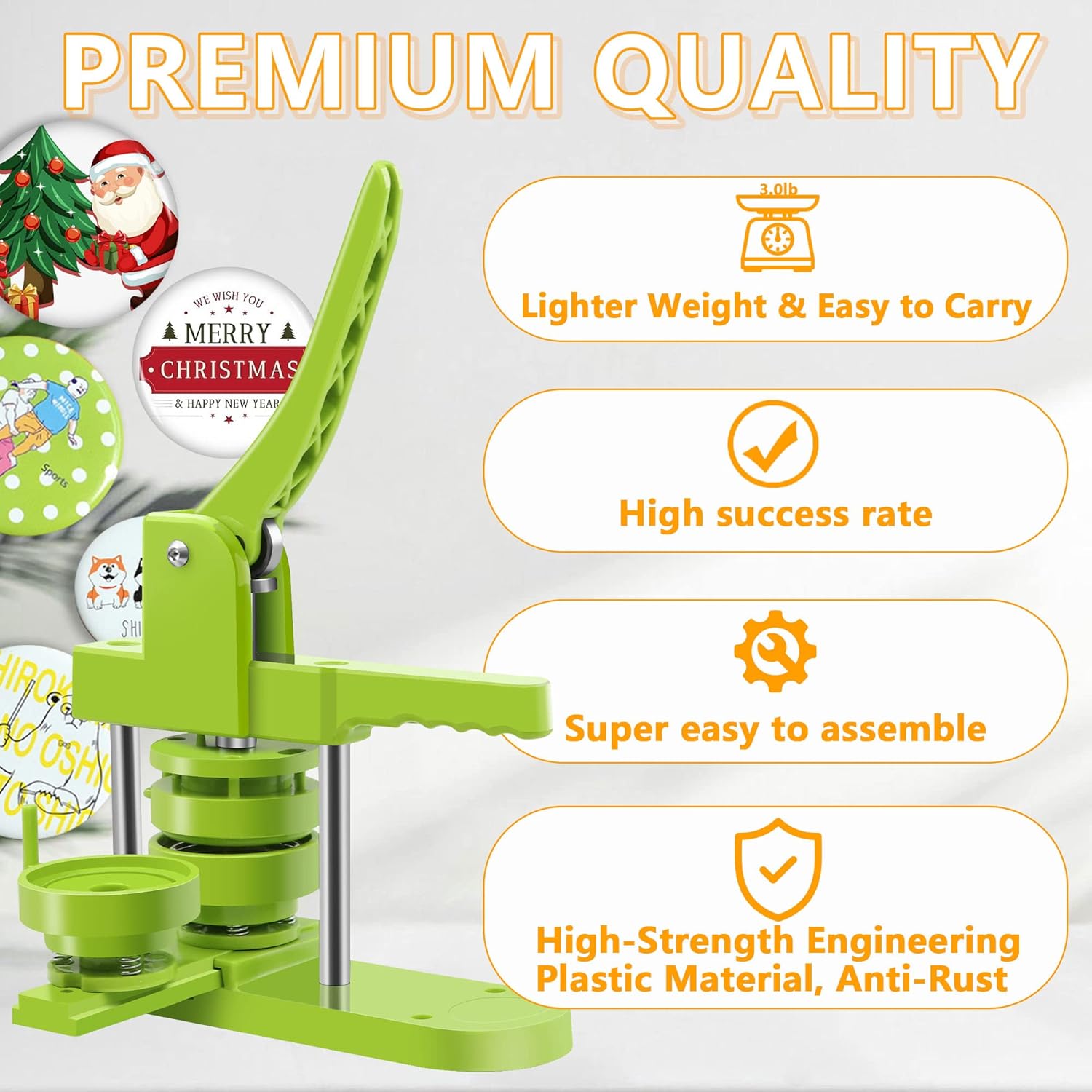 - ⚙️【Well Made & Durable】Our button press machine is made of high-strength engineering plastic, which has good mechanical properties, light weight, easy to carry, simple operation and anti-rust.