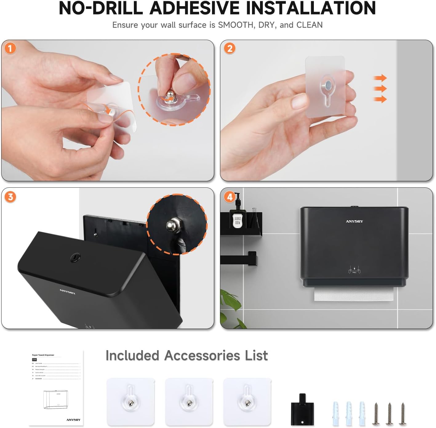 200-Sheet Wall-Mounted Paper Towel Dispenser, Fits Multi-Fold Towels up to 10x3.1 Inches, Perfect for Home & Business (Black)