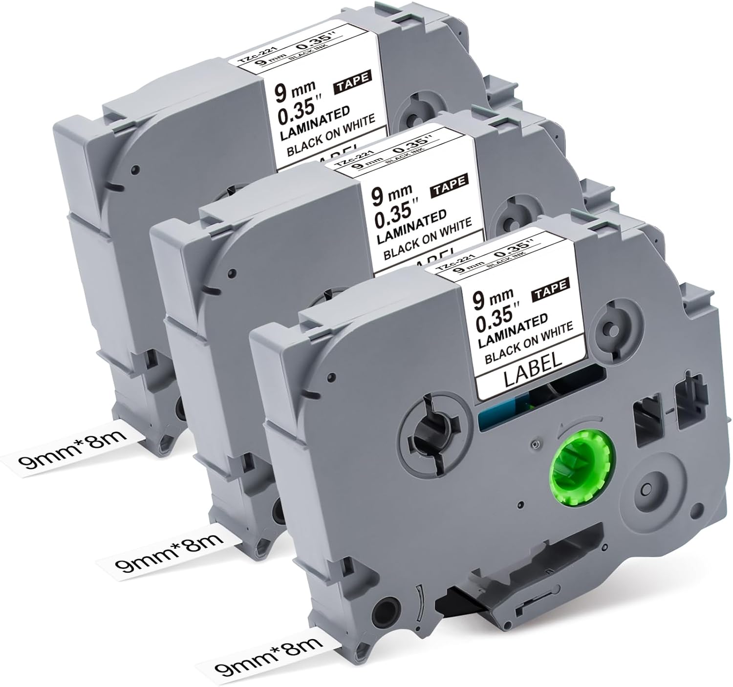9mm Label Maker Tape TZe-221 Replacement for Brother TZe TZ Tape 9mm 0.35" Laminated (Black on White) P Touch Label Tape TZe221 for Brother PT-D220 H100 D410 D600 1890 H103W, 3 Pack