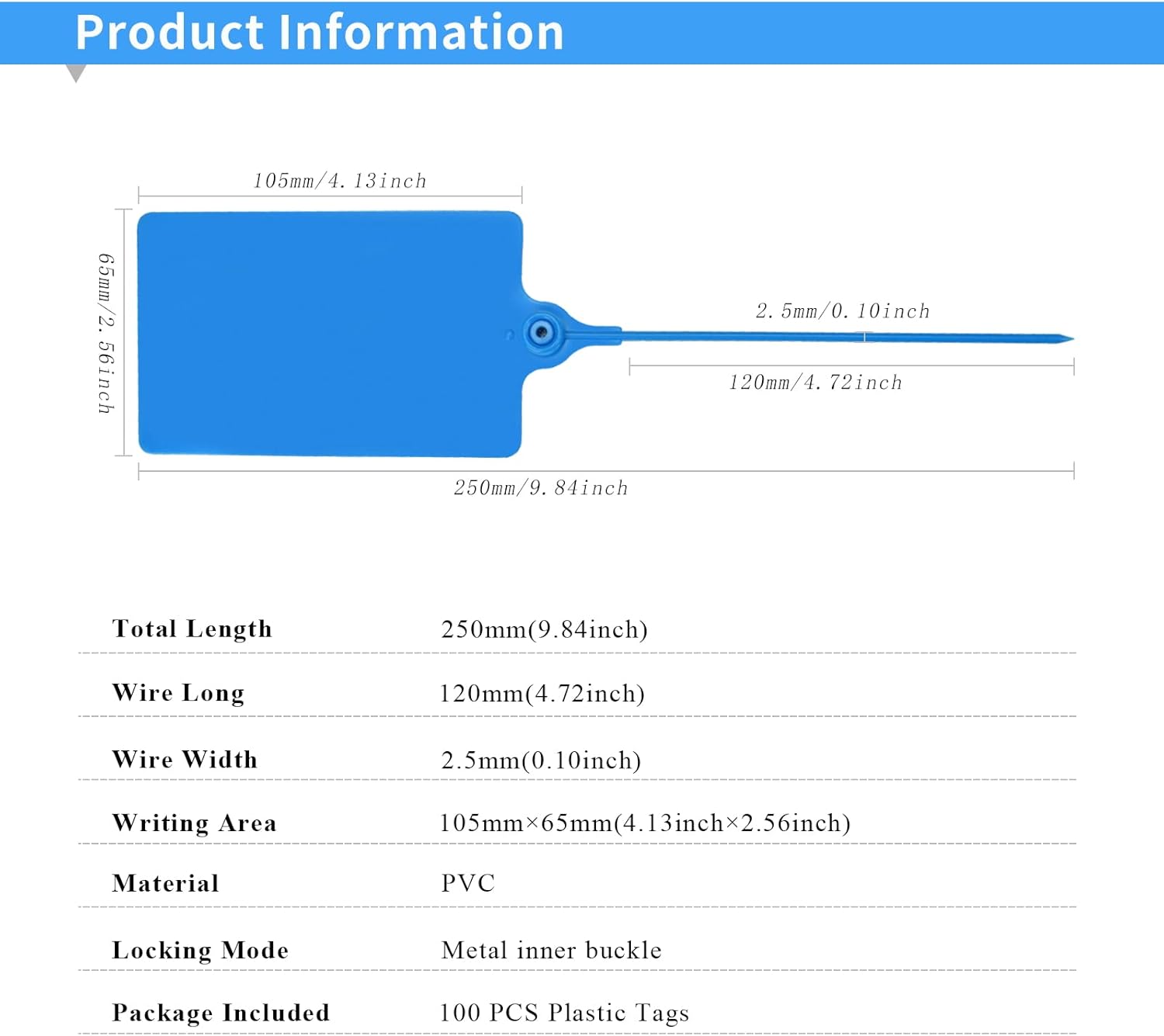 - 1. Specification: Plastic Label Tag Size: 105*65 mm/4.13"*2.56", available locking length: 148mm/5.83", Material: High Density Polypropylene.