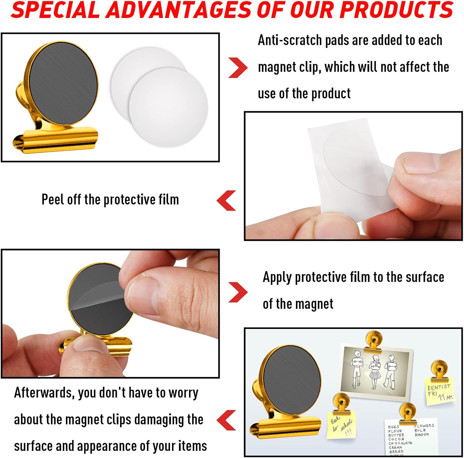 - ⚓【Scratch Safe】: You never need spending time to worry about the scratches on your metallic surface anymore, we've prepared free transparent protective pads that's convenient and does not affect the magnetism to work better for you.
