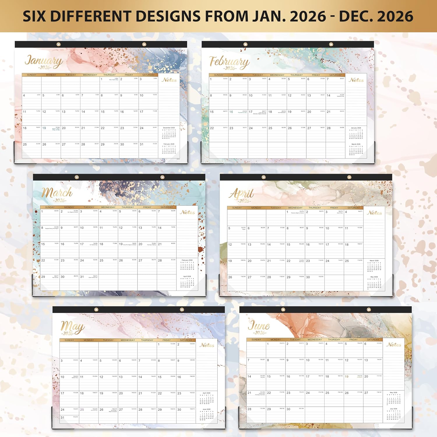 - PROFESSIONAL MONTHLY CONTENT DESIGN - Standard holidays marked and federal holidays highlighted + Ruled daily blocks (1.95" x 1.63") keep plans neat and legible + Full-year monthly reference on the bottom + Julian date + Note part. Every month features different color of quicksand background and 18 monthly mini overview calendars for the full year of 2026. Desk calendar 2026 with large ruled writing space to track deadlines, special events with clear organization.