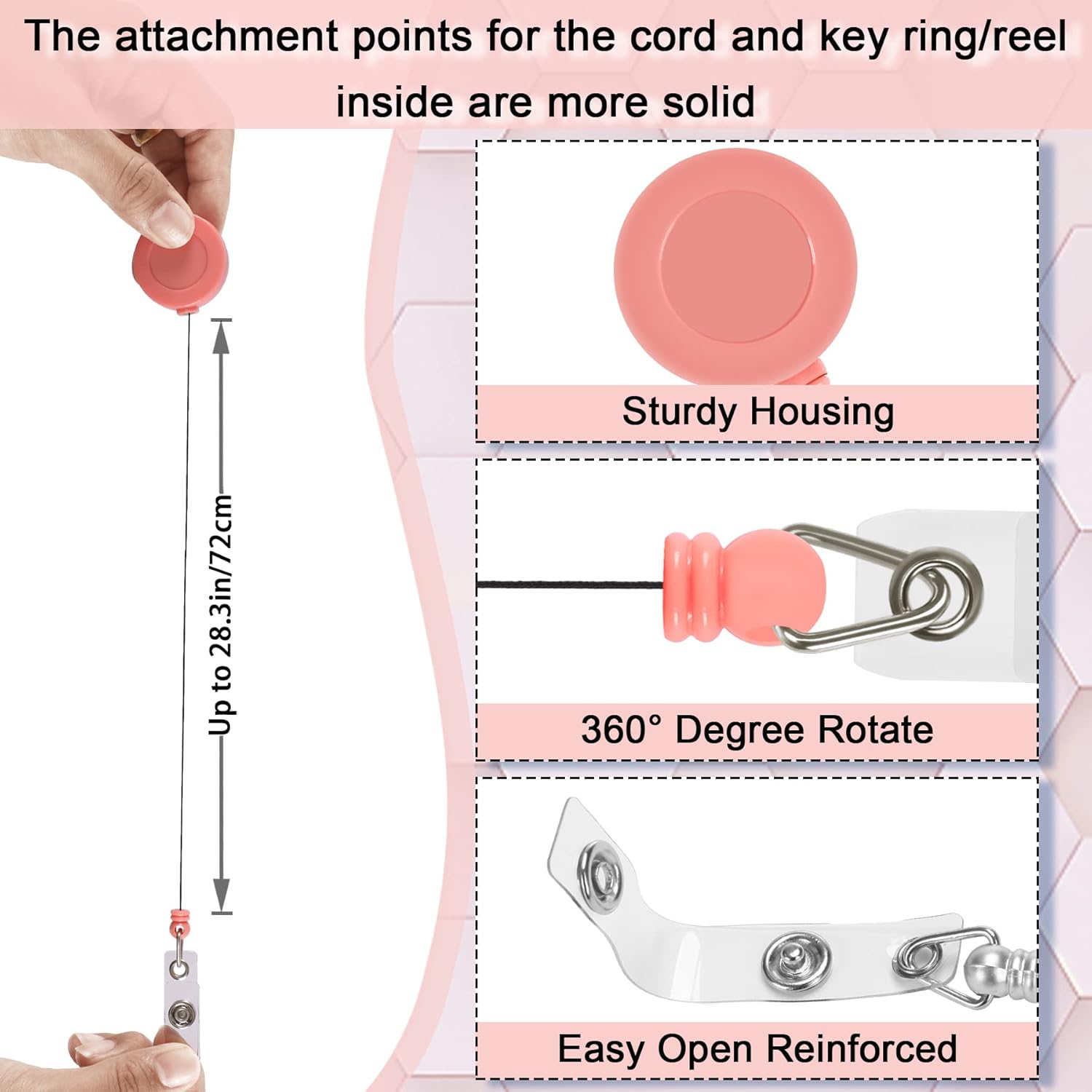 - Exquisite Workmanship: The shell of this quality badge reels retractable for nurses are made of ABS material and metal, which is strong and durable. The rope is made of quality nylon material, its strong and not easy to break. The rope length of the retractable lanyard is 28.3inch(72cm).easy to carry and store
