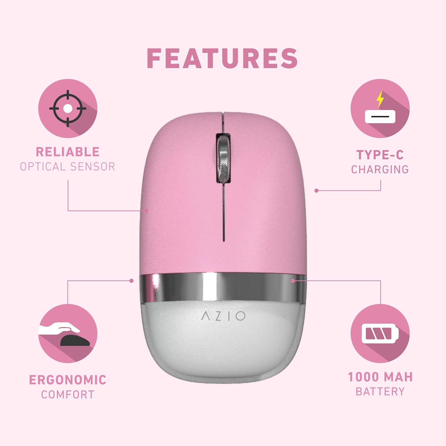 Azio IZO Wireless Optical Mouse - Bluetooth 3.0 & 5.0/2.4G RF-USB, Ambidextrous Design, PixArt PAW3212 Sensor, 1000/1600/2400 DPI, Rechargeable, PC & Mac