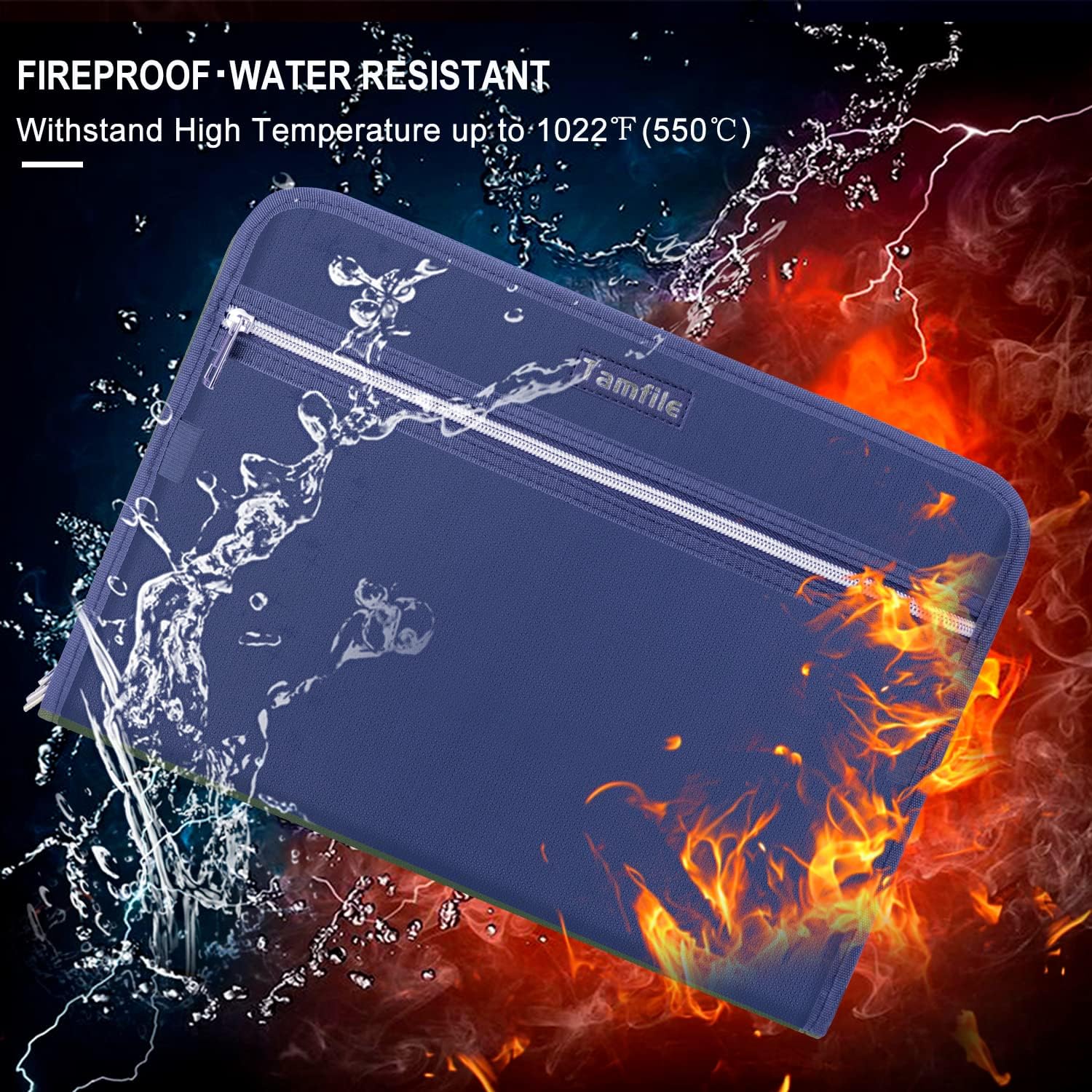 - [Fireproof and waterproof]: In the document organizer of fire, extend the time that the flame burns to the file, and buy time for rescue. In rainy conditions, you don't have to worry about the file being wet by the rain. It cannot be completely fireproof and waterproof. Please do not immerse the folder in the water. Water will enter the interior through the gap.