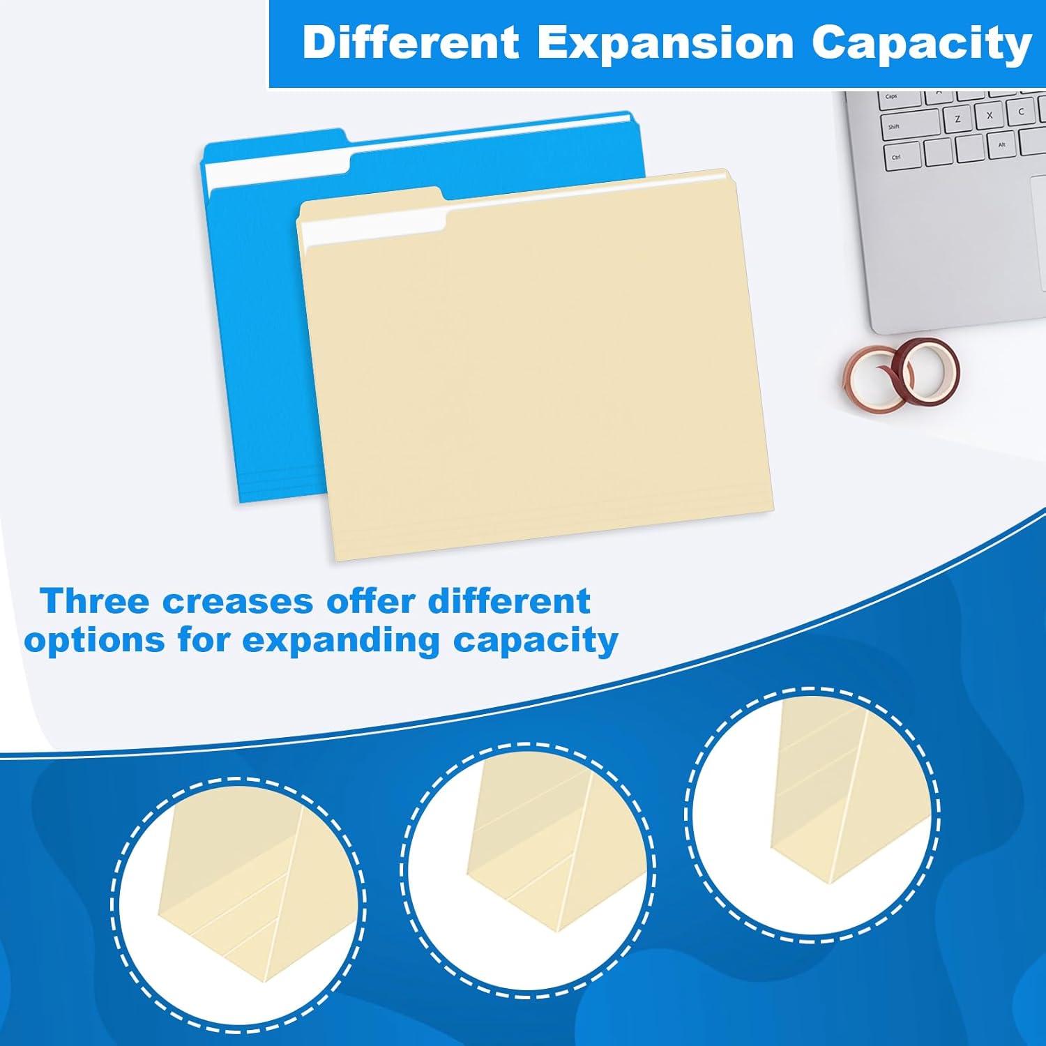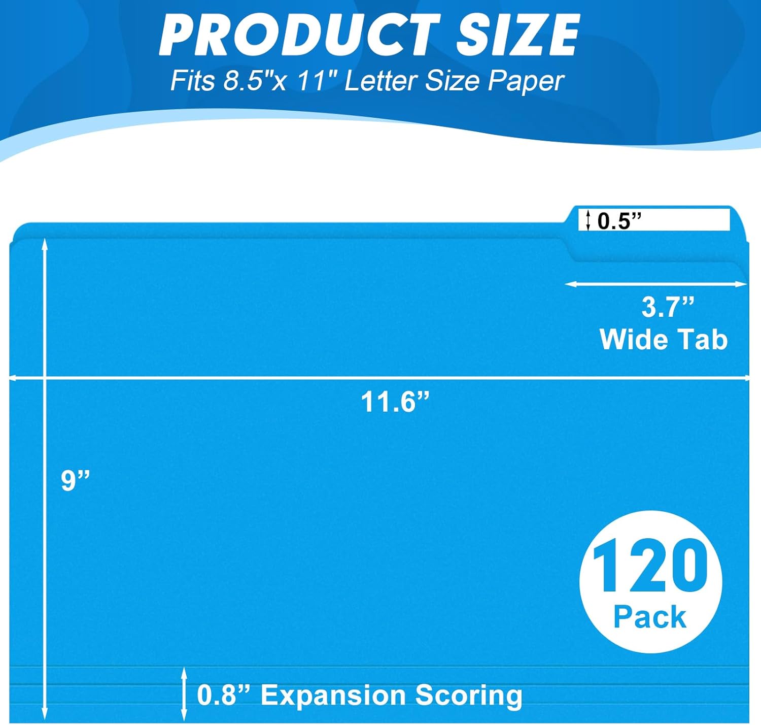- FILE FOLDERS SET: Contains 120 pack folders in 6 assorted primary colors (off-white, red, blue, yellow, orange and green) to make color-coded filing categories. Organize different types of documents for classification and storage.