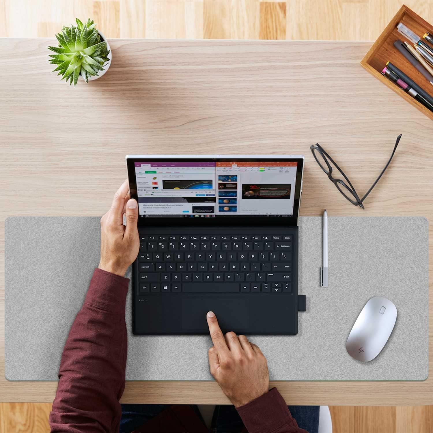 - Dual-Side Design: Our desk pad features the same material in different colors on each side, allowing you to use both. Simply flip it for a fresh look. This pad adds a modern and professional touch to your workspace