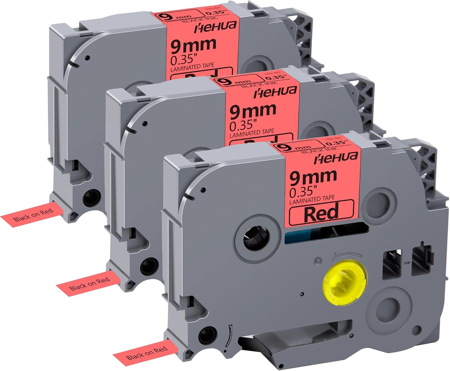Hehua 9mm 0.35 Laminated Red Tape Compatible for Brother P-Touch TZe-421 TZe421 TZ-421 TZ421 TZe TZ Label Tape for Ptouch PT D210 D200 H110 1880, 3/8'' x 26.2ft Black on Red, 3 Pack