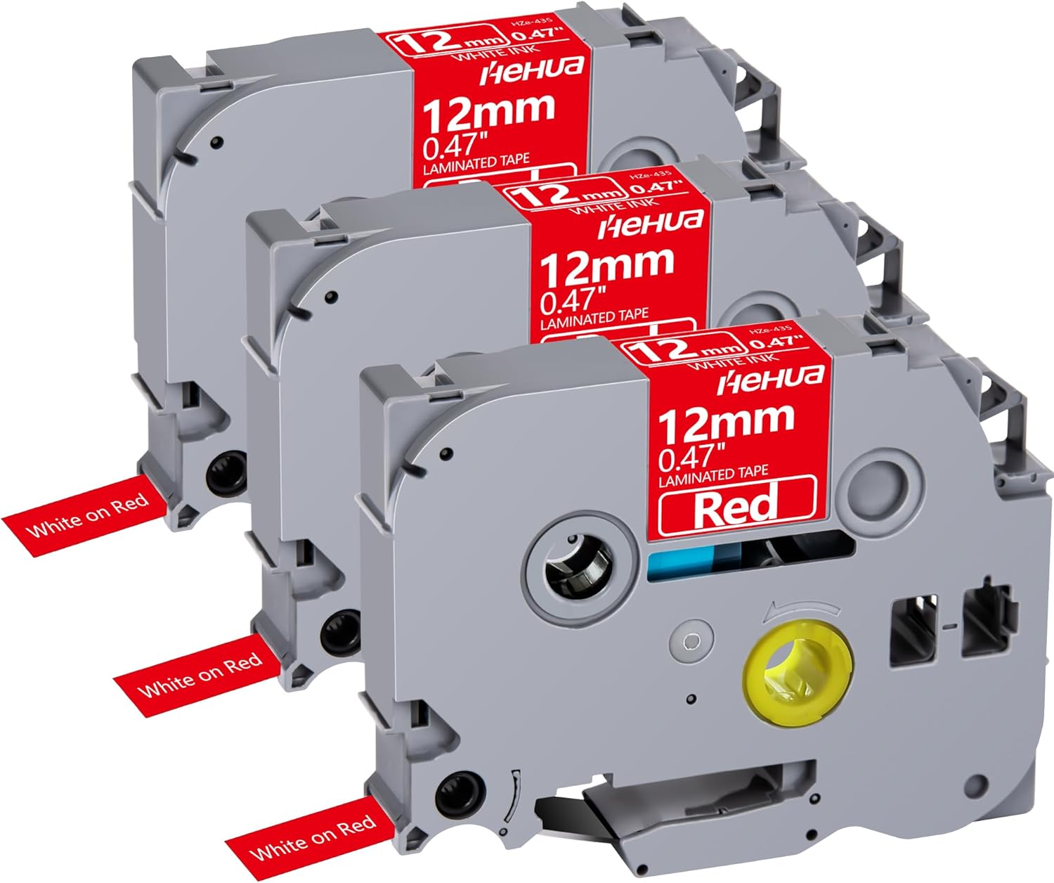 Hehua Tze Tz Tape 12mm 0.47 Laminated Red Compatible for Brother P-Touch TZe-435 TZe435 TZ-435 TZ435 Tape for Ptouch PT D210 D200 D220 D610, 1/2'' x 26.2ft White on Red, 3 Pack