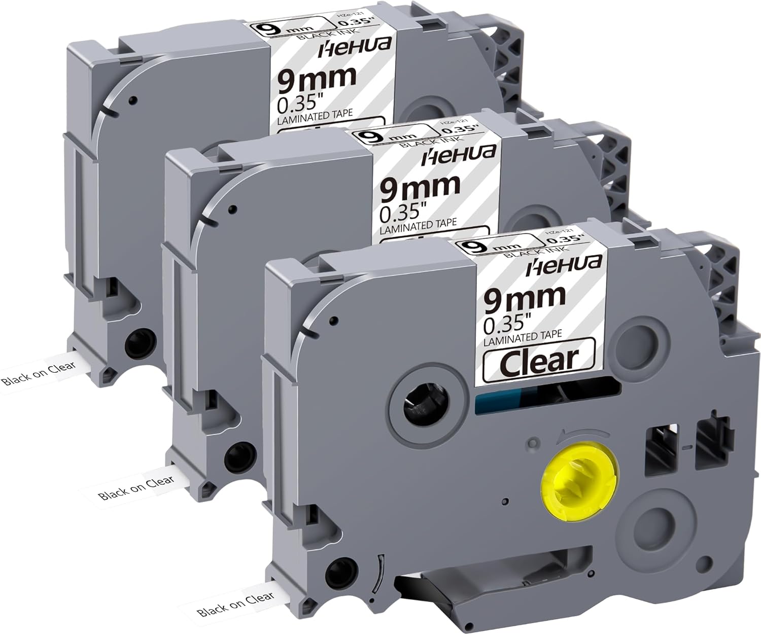 Hehua Tze Tz Tape 9mm 0.35 Laminated Clear Tape Compatible for Brother Label Maker Tape TZe-121 TZe121 TZ-121 TZ121 for Ptouch PT D210 D200 D220 D610 H110 1880, 3/8'' x 26.2ft Black on Clear, 3 Pack