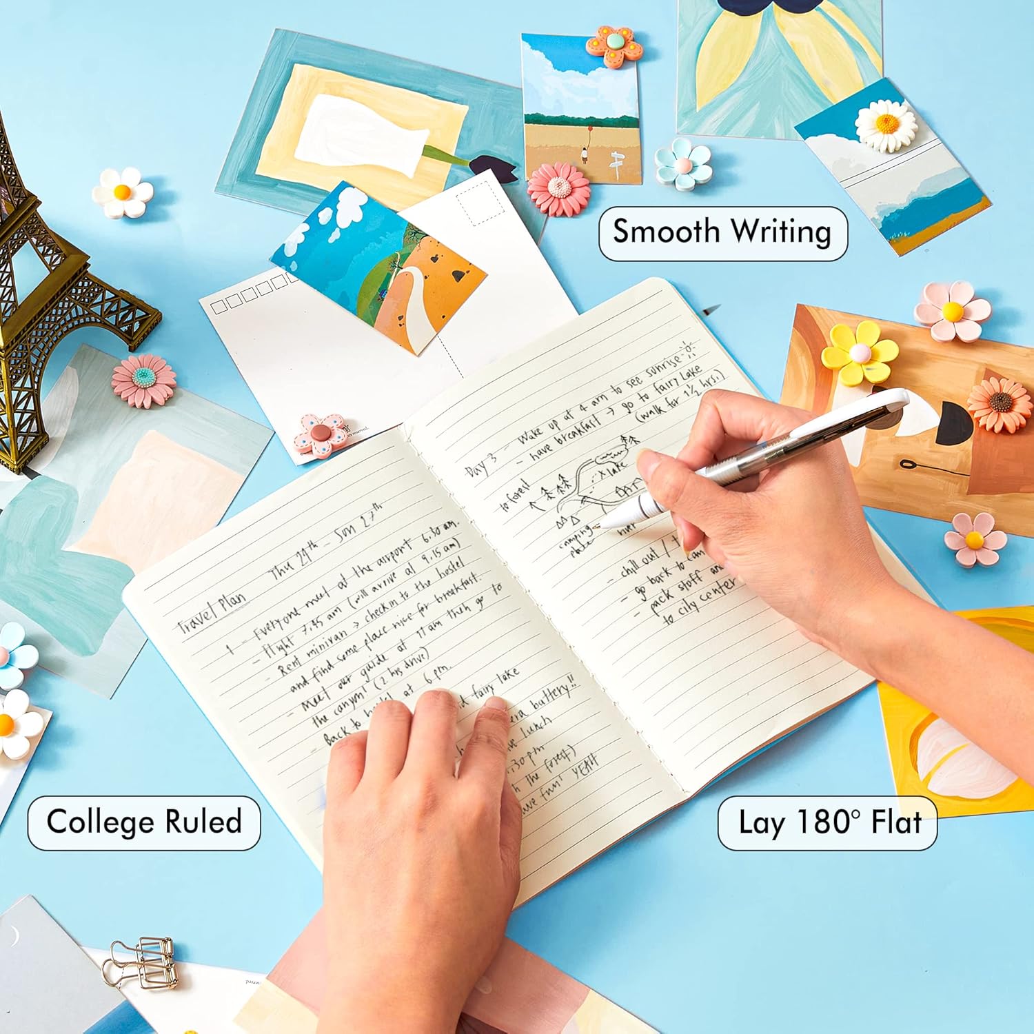 - Feela 8 Pack Soft Cover Journals include 8 light blue A5 college ruled soft cover travel journals. 250 GSM colored paper cover outside and 80 GSM smooth writing lined pages inside.