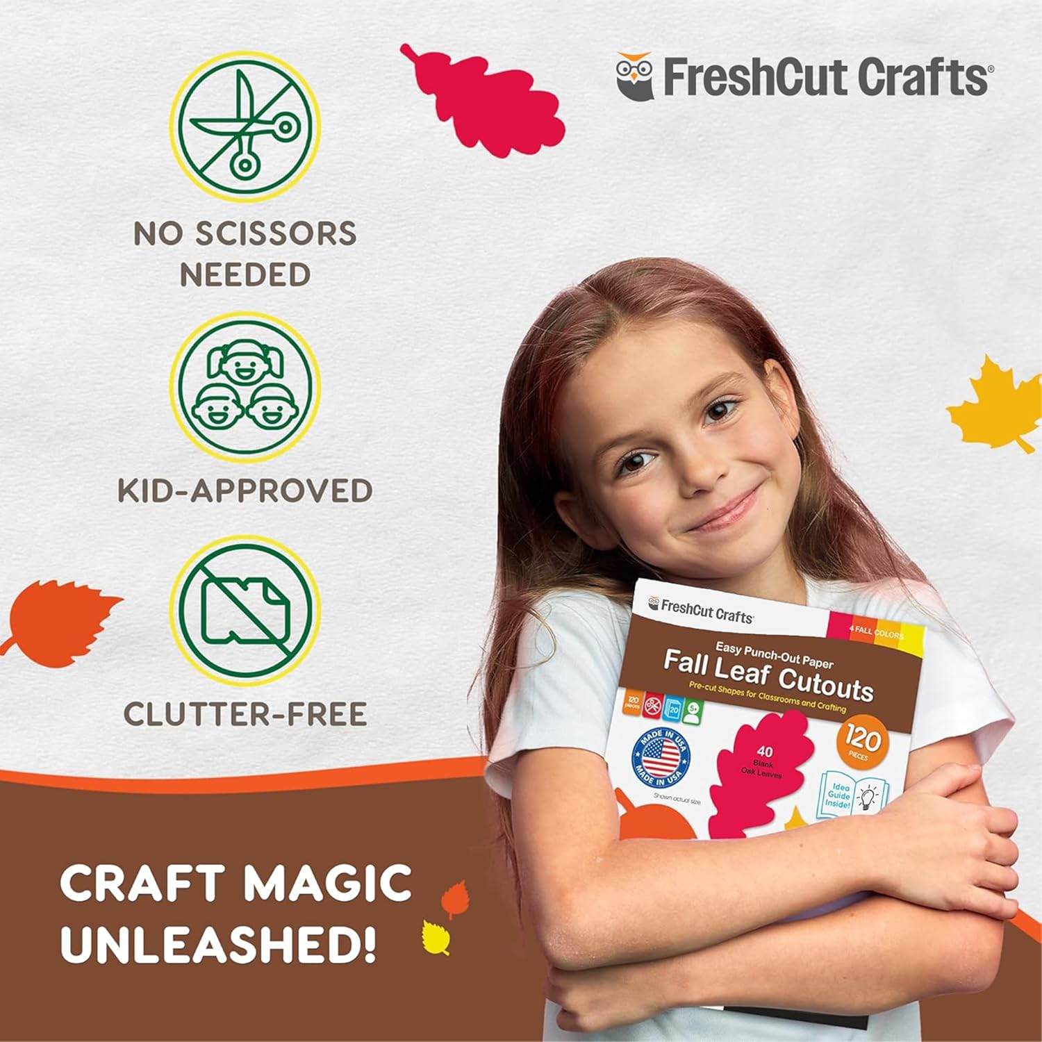 - LEAFY CREATIVITY: Create a world of autumn beauty with our set of 120 punch-out Fall leaf cutouts! Each leaf is crafted from high-quality card stock, offering a variety of shades in bright yellow, orange, and red. But that's not all - included inside is an IDEA GUIDE, brimming with 12 imaginative ways to utilize our paper leaf shapes. Whether you're embellishing seasonal displays, or creating stunning crafts these versatile cutouts are sure to inspire your creativity!