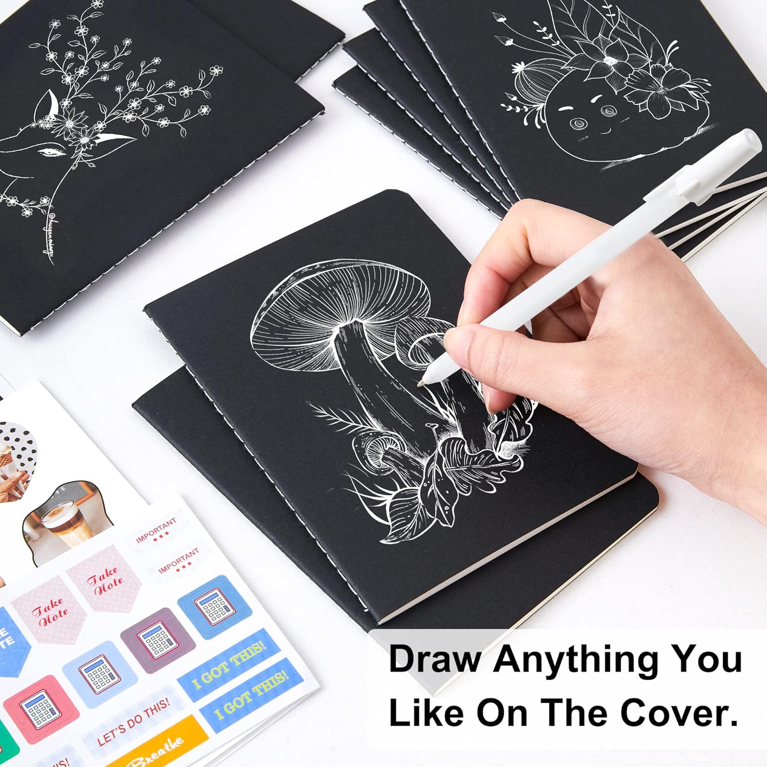feela 170 Pack Blank Kraft Notebooks, Unlined Sketchbook Mini Cute Note Pad for Drawing Writing, Journal Bulk For Kids Students Office School Supplies, A6, 48 Pages, 4.25” X 5.5”, Black