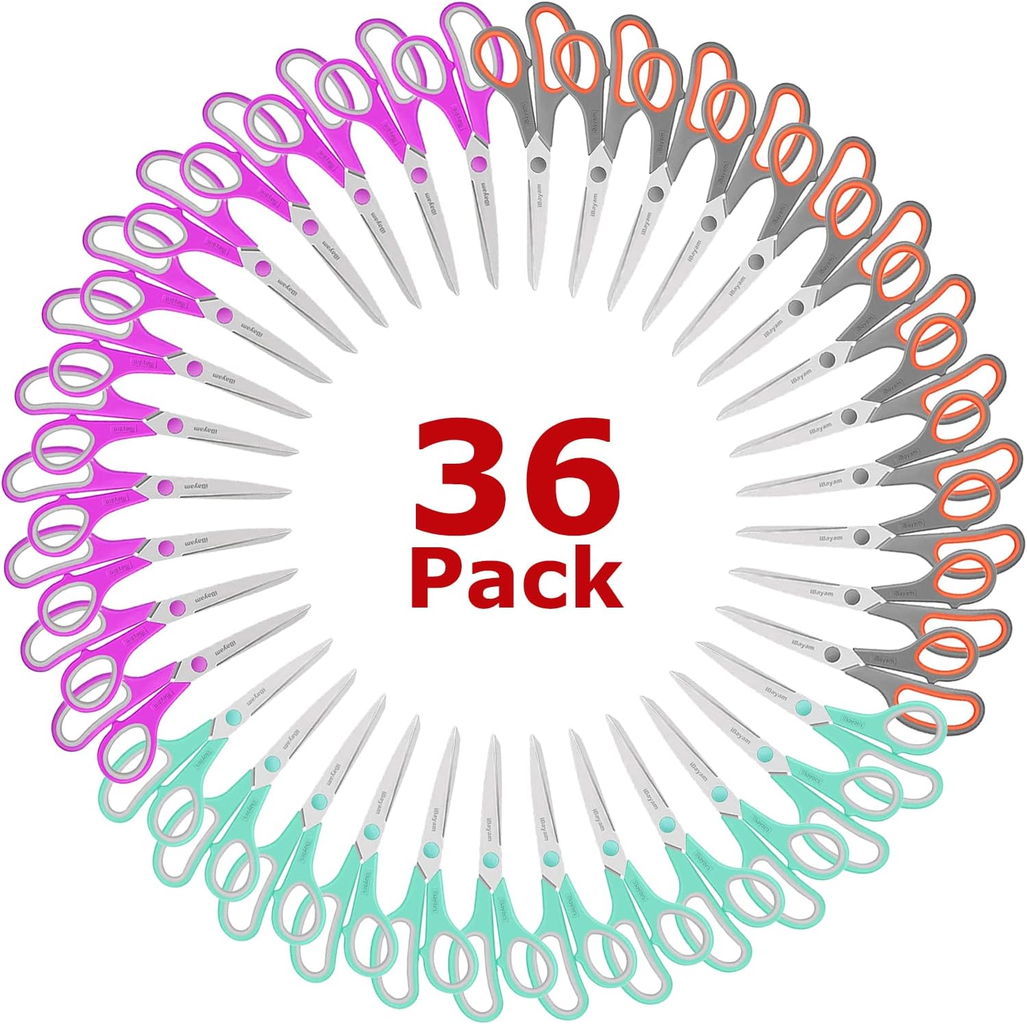 iBayam 8 '' Multipurpose Heavy Duty Scissors Bulk 36-Pack, 2.5mm Thickness Ultra Sharp Blade Shears with Comfort-Grip Handles for Household School Office Supplies, Right/Left Hand Tools