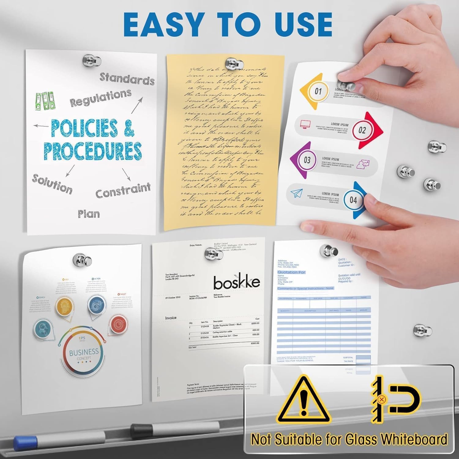 - 【Versatile and Powerfull】These magnetic push pins are highly versatile and offer strong adhesion, securely holding up to 12 sheets of paper or other lightweight items on magnetic surfaces.