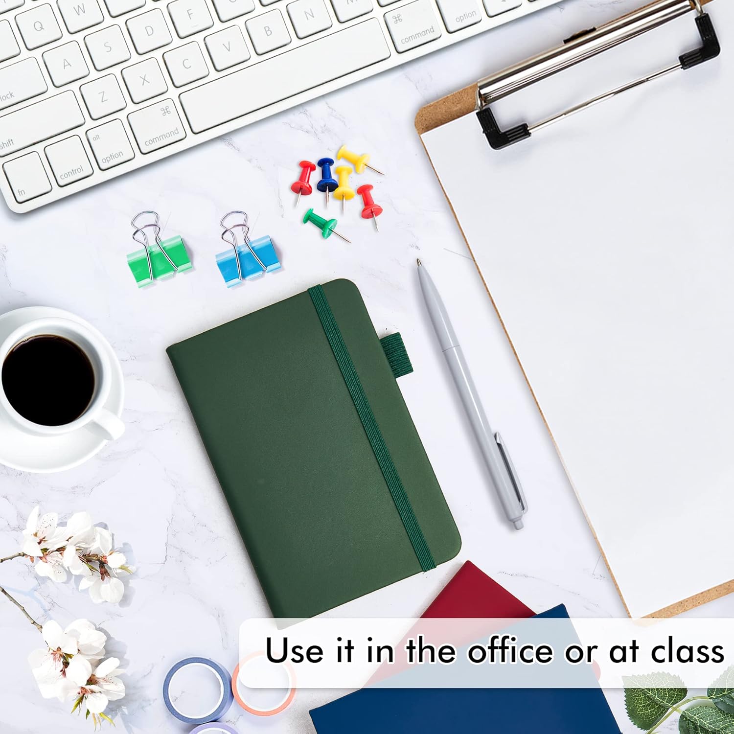 feela Pocket Mini Notebooks Bulk, Small Cute Memo Notepads Hardcover College Ruled Lined Journals with Pen Holder for School Business Work, with 6 Black Pens, 3.5”x 5.5”, 6 Pack, A6, Vintage Colors