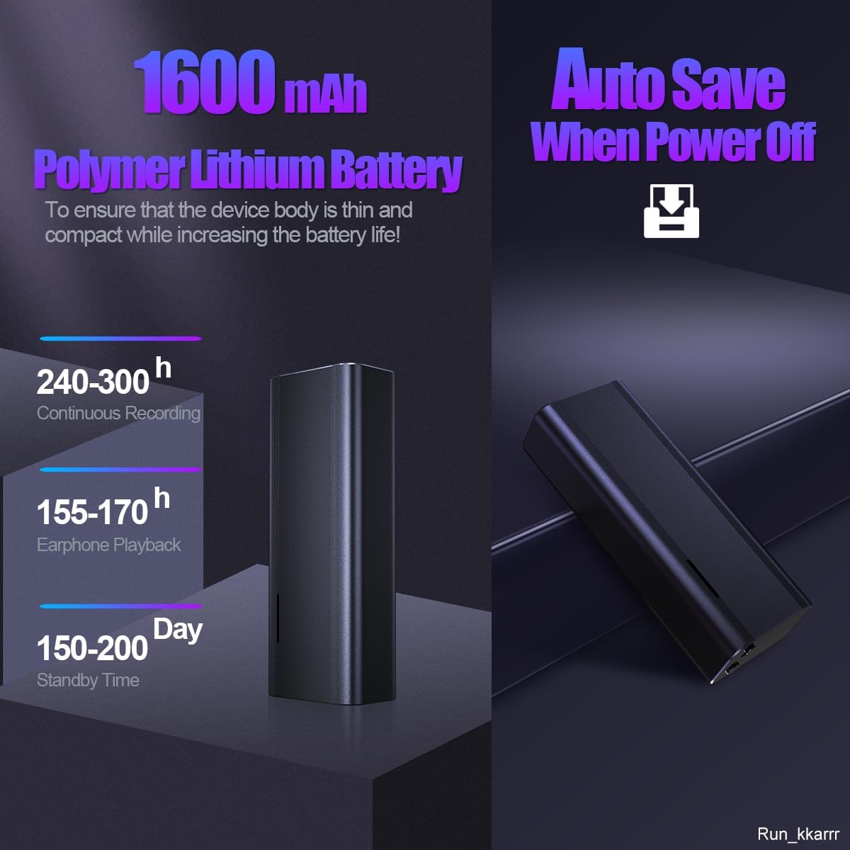 - 【LARGE CAPACITY】 This voice activated recorder supports 128GB of memory which is insert in the device can store 1536H recording file at 192KBPS. And the built-in high-capacity battery can support 240 hours of continuous recording or 160 hours of headphone continuous playback. ❤️Because of the large memory, the computer recognition is relatively slow, please wait patiently❤️