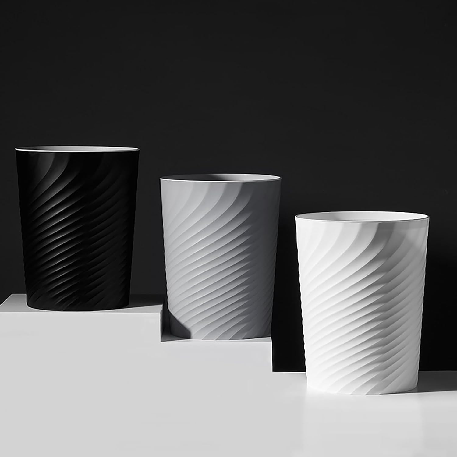 - Home Decoration: Screw thread shape design and white color, adding a modern touch to any space. The wastebasket is great for bathroom office bedroom college dorms, apartments and RVs.